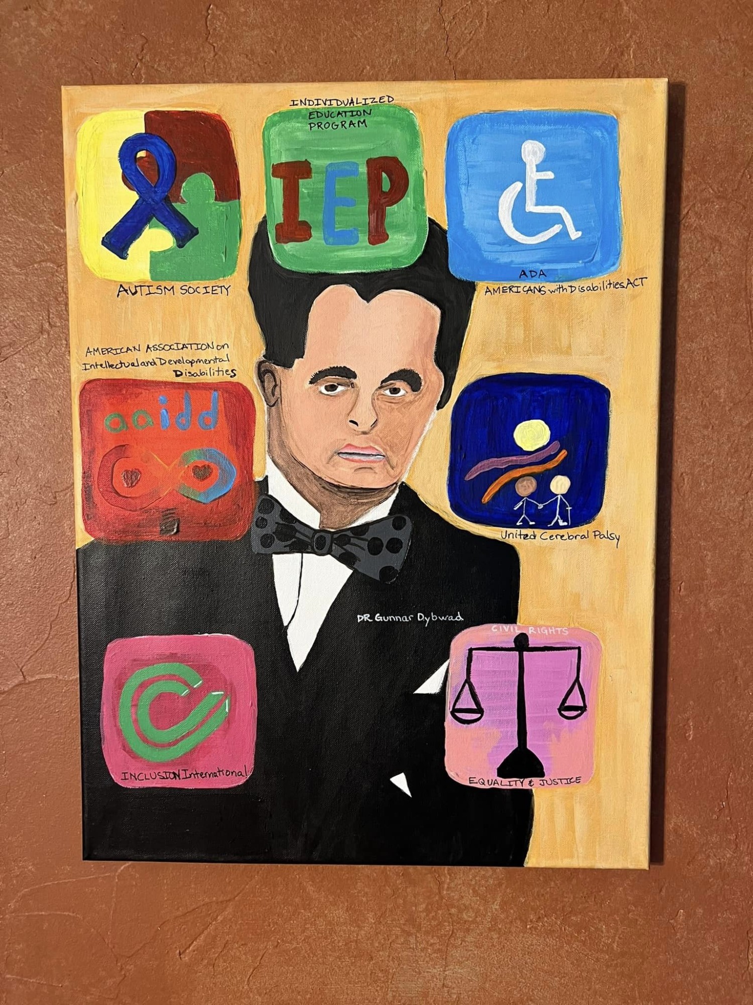 Excerpt from artist’s Impact Statement: "Dr. Dybwad believed in rights for those with mental and other disabilities and fought for laws to protect individuals with these differences and challenges. It's hard to believe that individuals like myself were once institutionalized and given poor living and learning conditions and had no voice to say that they felt unsafe and unloved."