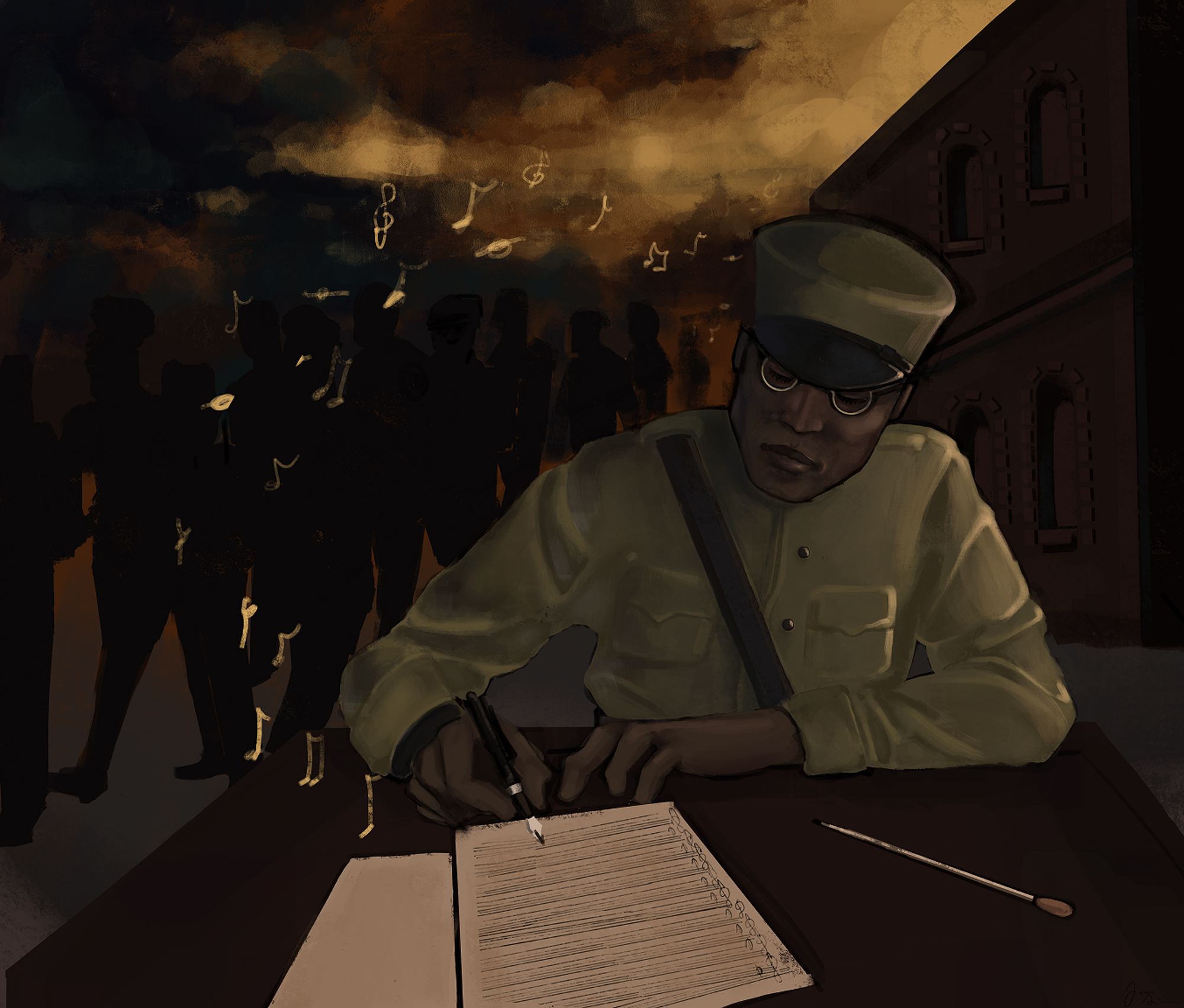 Excerpt from artist’s Impact Statement: "Through researching James Reese Europe, I learned more about his influence and details on World War I. I plan to share this artwork with my band director, who inspired me to admire this Unsung Hero."