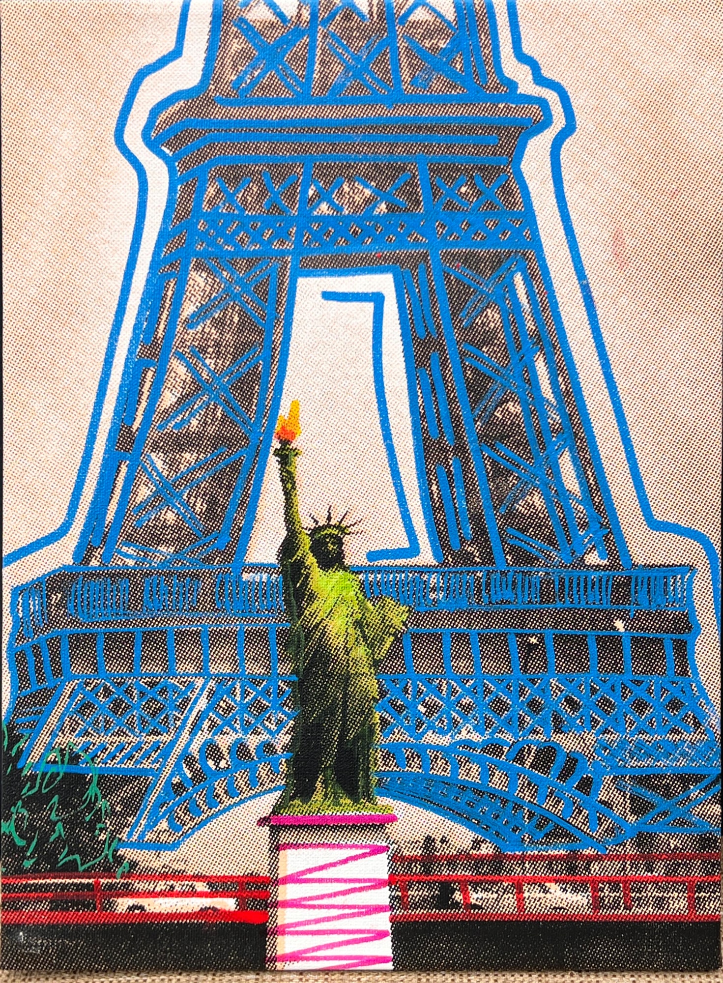 Eiffel Tower with Statue of Liberty (Blue) by Steve Kaufman