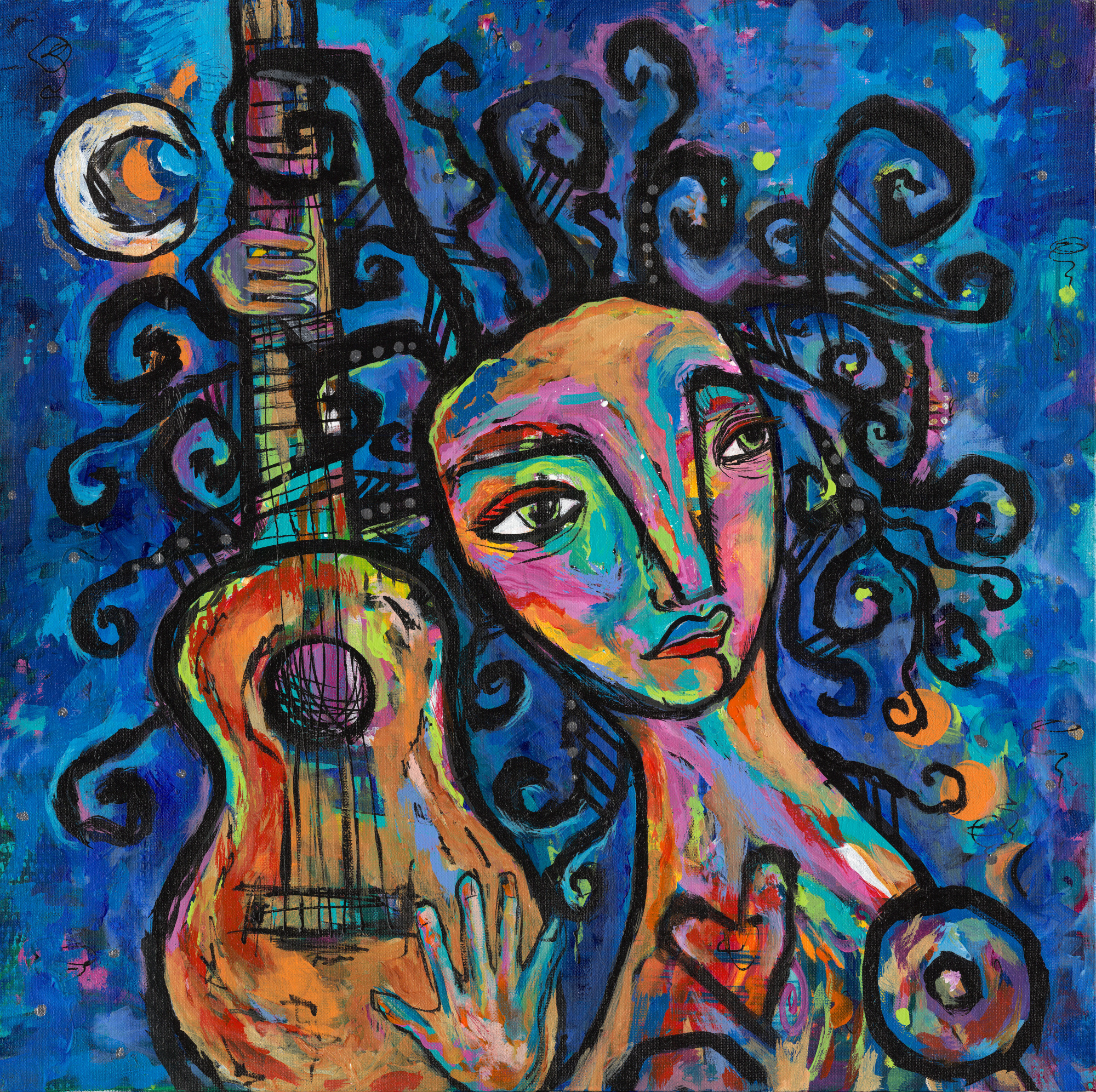 Another evolution, painting over a piece that no longer felt like it worked for me, this one expresses the joy of music and my latin spirit.