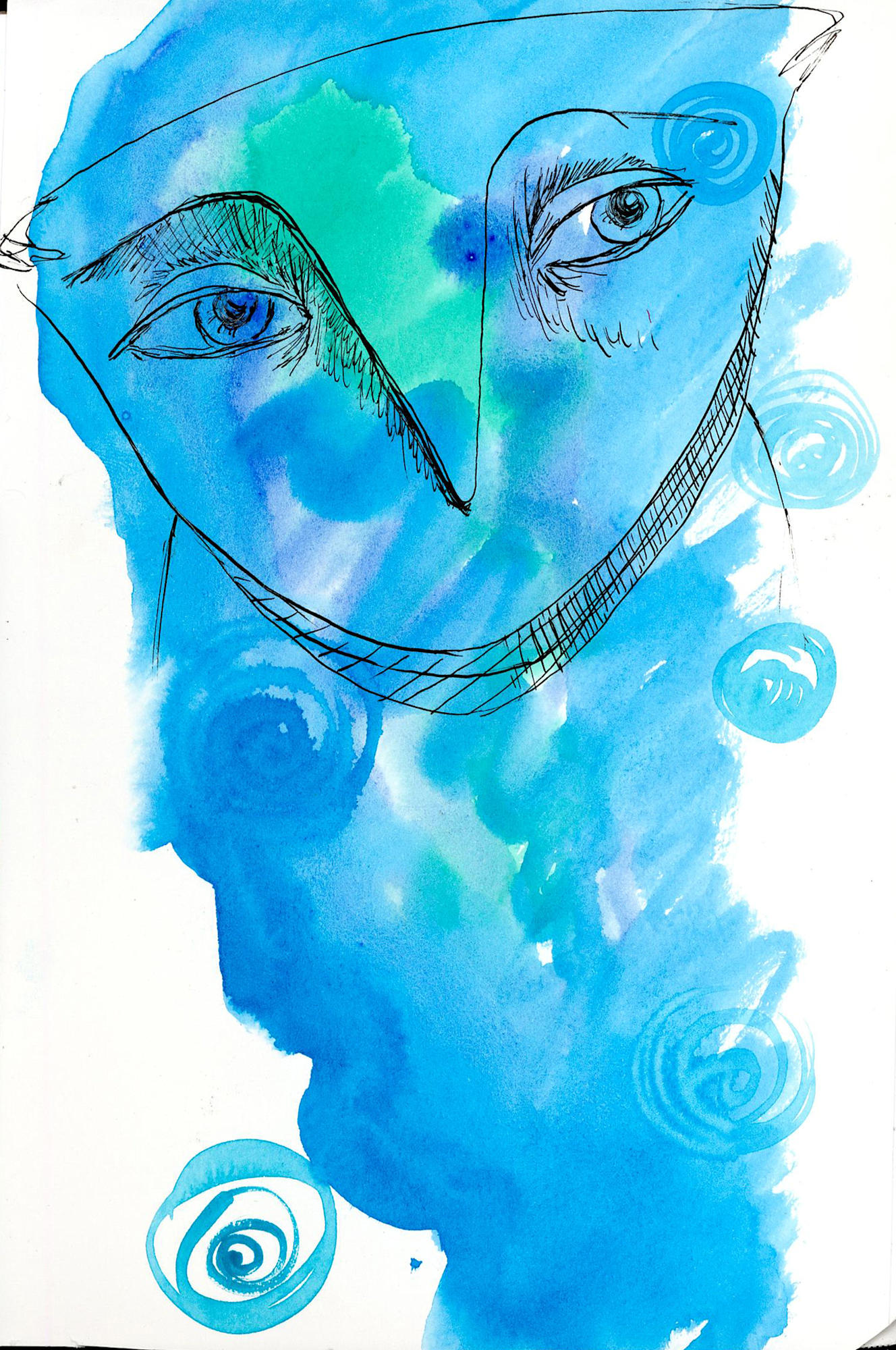Lost Journal Pages made for the Brooklyn Art Library Sketchbook Project: I spent part of the pandemic and beyond working with pen, ink, paper, and watercolor within my journal. When finished, I scanned it, put it into a priority mail envelope, and mailed it to the organization. It never arrived, and when my project never showed in their inventory list, I dug out the scanned files to send to them. This is one of the pages from that lost journal (destroyed, stolen, lost?). Available only as a print upon request.