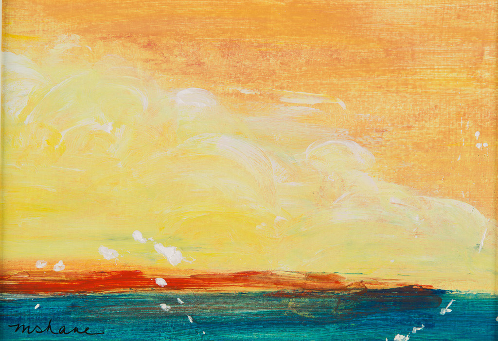 Abstract seascape with a vibrant sky. A splash of color. Matted and ready to frame