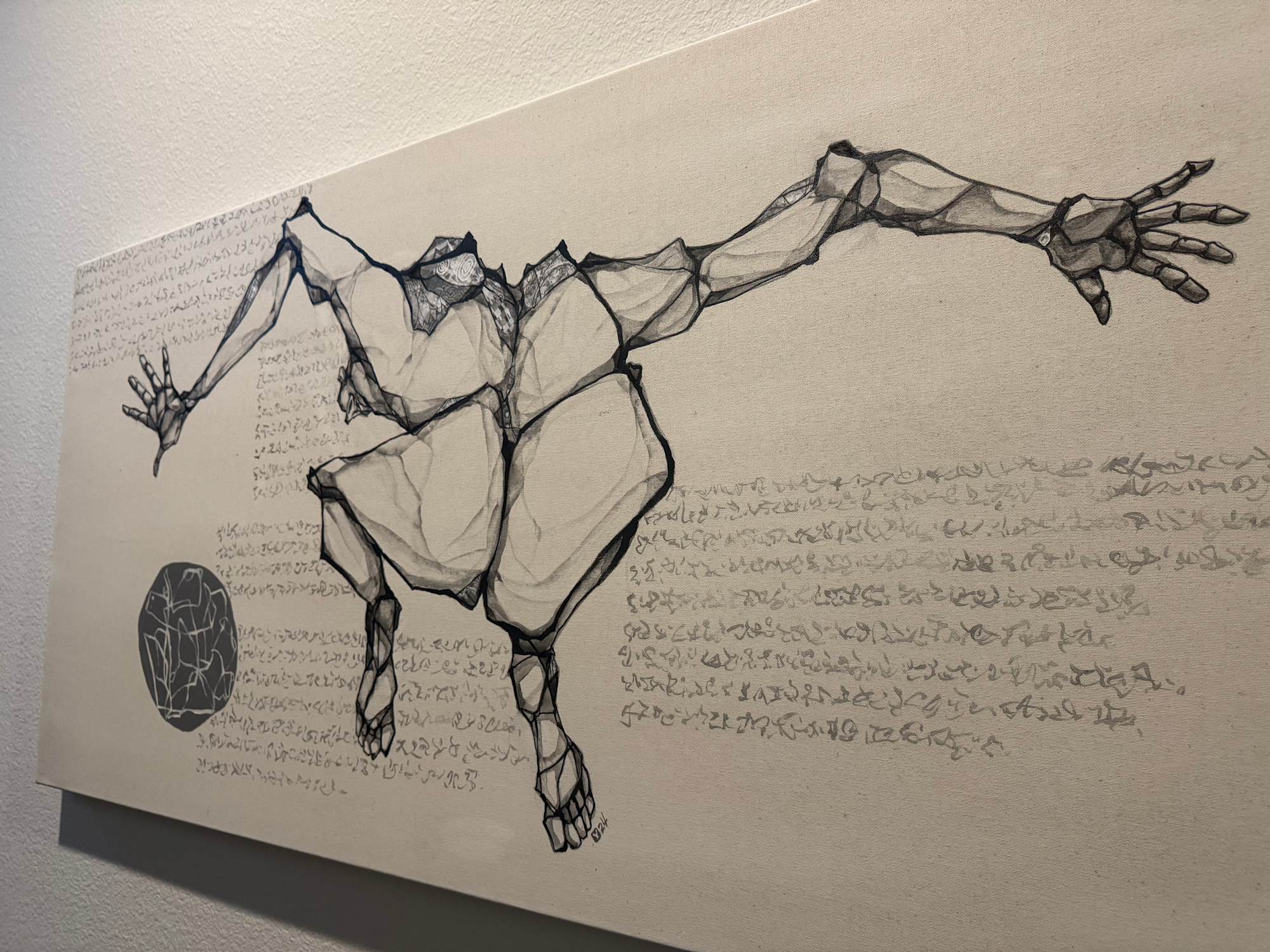 This piece takes inspiration from Plato’s playful “featherless biped” definition of humans and Diogenes’ cheeky chicken joke. It reminds us that defining what it means to be human isn’t easy—maybe Plato would have had more luck if he’d tried to describe a chicken instead! This painting shows a person flying towards the land of ideas by discovering their inner self.