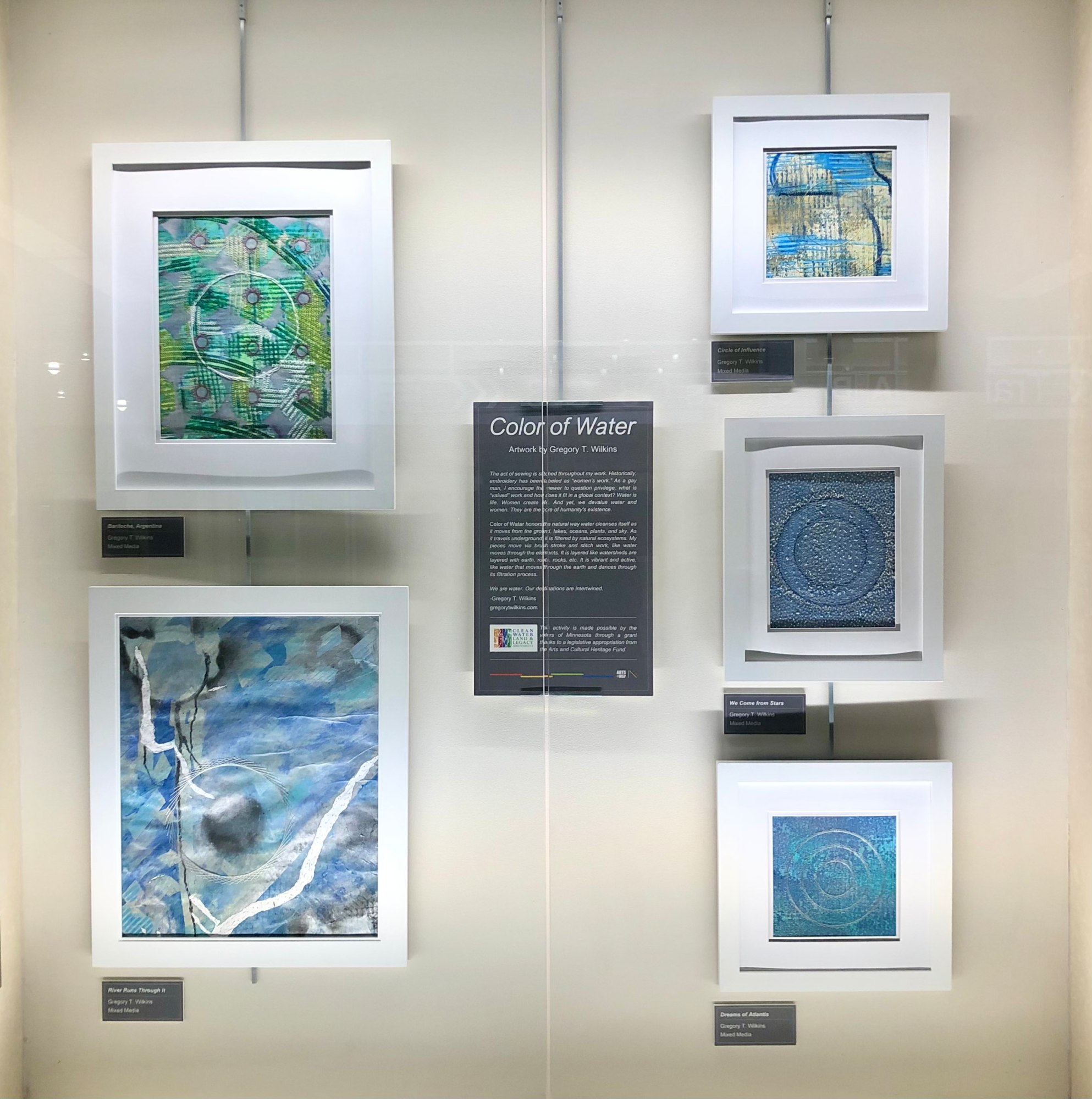 Color of Water honors the natural way water cleanses itself as it moves from the ground, lakes, oceans, plants, and sky. As it travels underground, it is filtered by natural ecosystems. My pieces move via brush stroke and stitch work, like water moves through the elements. It is layered like watersheds are layered with earth, roots, rocks, etc. It is vibrant and active, like water that moves through the earth and dances through its filtration process.