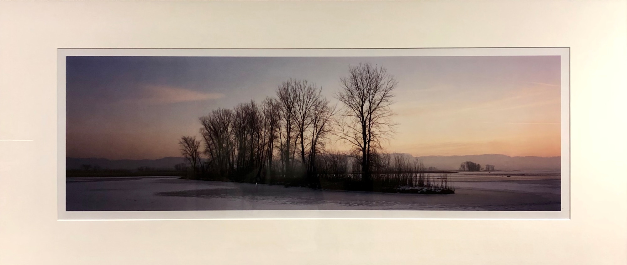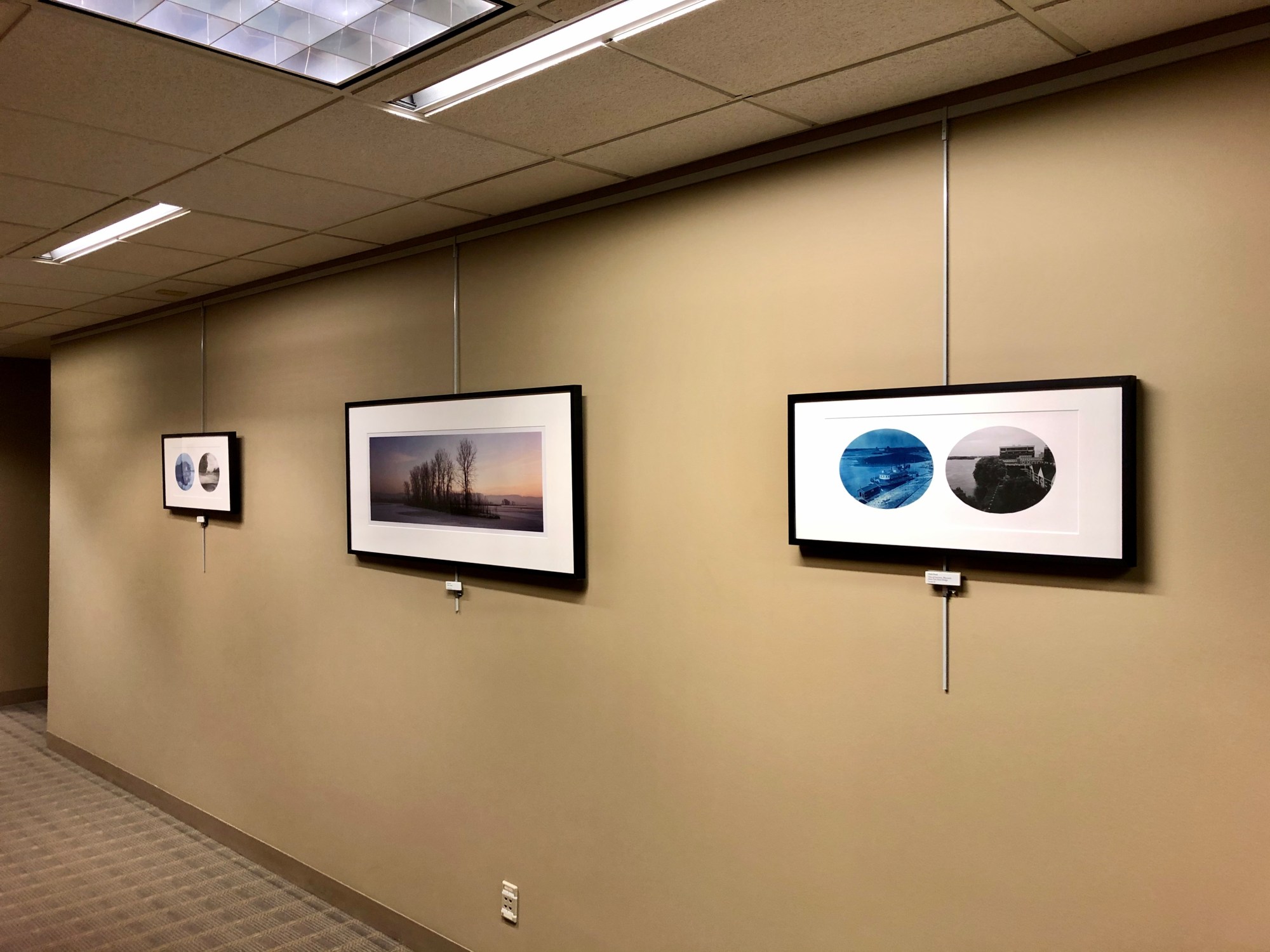 "The larger prints are more current views of the Upper Mississippi. These diptychs and the other larger prints displayed were part of a larger traveling show on the Upper Mississippi River. The work can be purchased. For now the Diptychs are printed in the size . The larger prints (12X38") can also be made as 7"X22" or even larger 18"X54". "