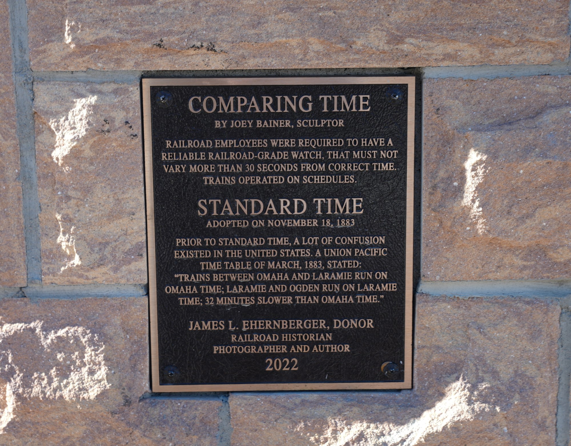 Jim Ehernberger is a lifelong train enthusiast and amateur historian. His knowledge of the history of the railroads in this region runs deep. When he was approached about participating in the Capitol Avenue Bronze Project, he wanted to share his passion by teaching how time was originally kept by the railroads and what an essential function it was for efficient operation and safety.