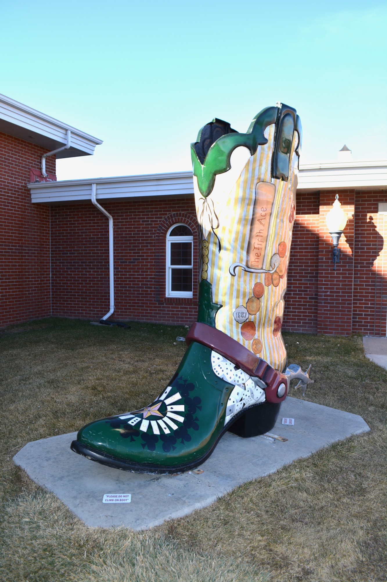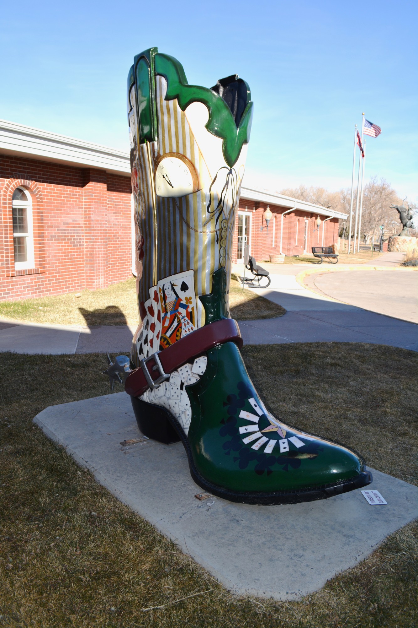 The Gambler's Boot was created as part of "These Boots Are Made for Talking" and is installed on the east side of the Old West Museum. The Big Boots Initiative is a joint public art project of the Cheyenne Depot Museum Foundation and the Cheyenne Downtown Development Authority.