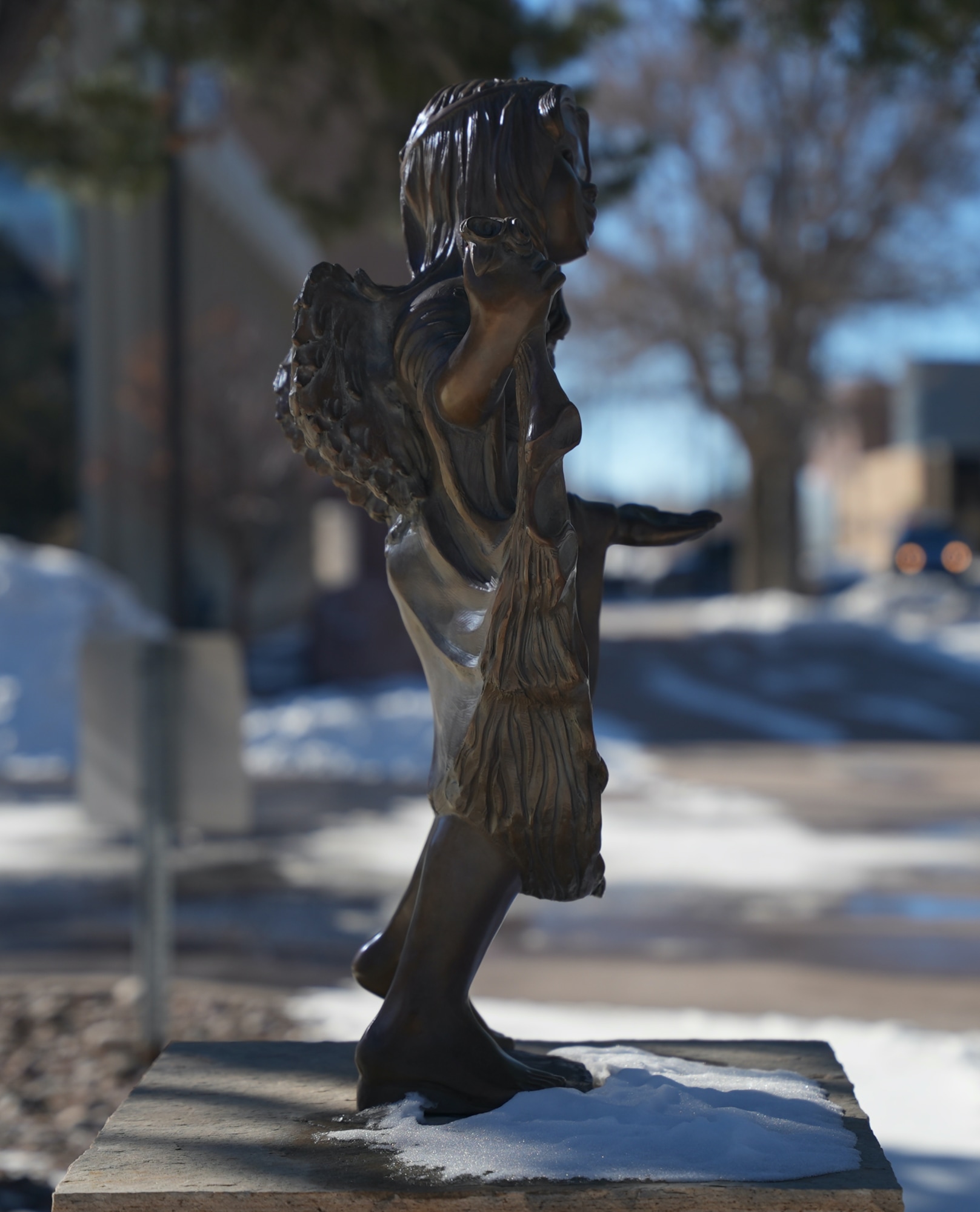“Garden Angel” is a part of the Capitol Avenue Bronze public art collection . . donated to the City of Cheyenne by private individuals, organizations or companies. The sculpture depicts a young garden angel holding a flower in one hand.
