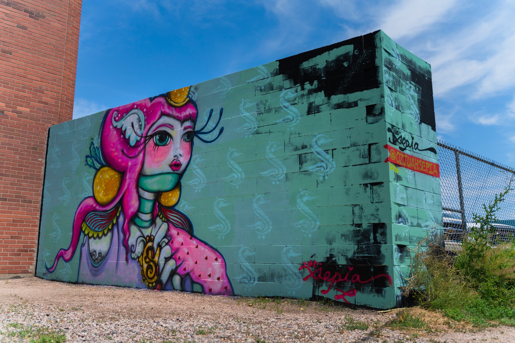 This mural is on the alley wall of the T.R.E Consignment building at 609 W. Lincolnway and was created as part of the Paint Slingers initiative.