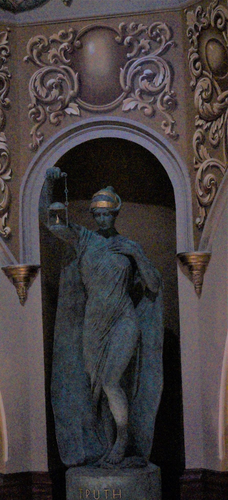Truth is wise and the oldest of the four sister statues. Truth calls us to follow her, to walk by her side, for she illuminates our way. In her absence there is darkness, strife, and suffer, In her presence life is clear and meaningful.