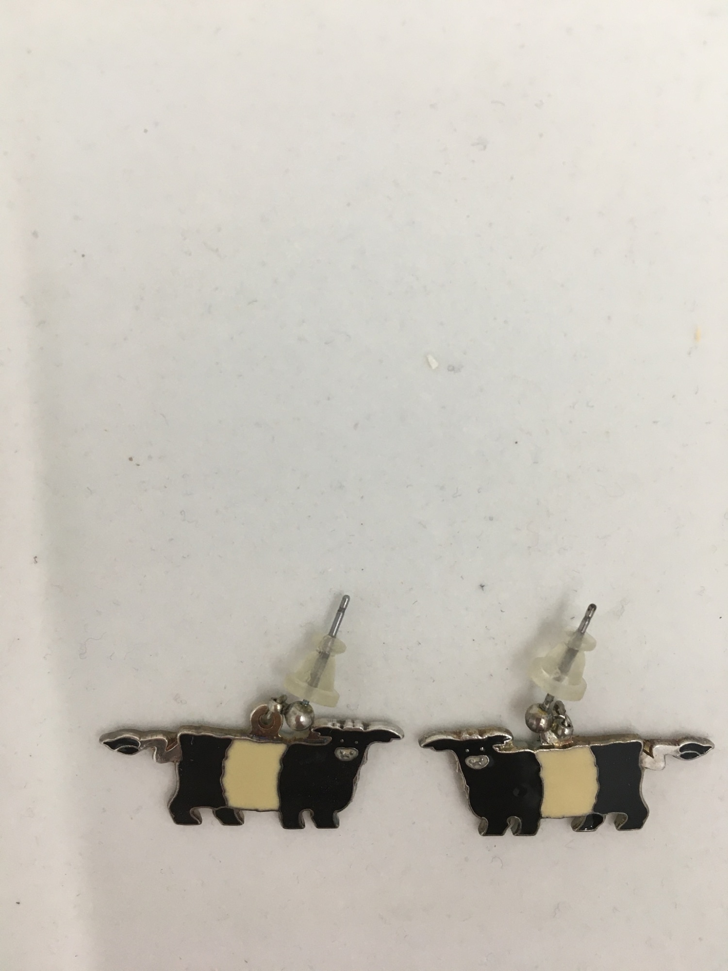 Earrings of enamel Belted Galloway cows with silver metal posts for pierced earrings. Slight 1/2” drop. A Fearrington Village favorite, though the Belties hark from Scotland! They measure approx. 10 x 22 mm.