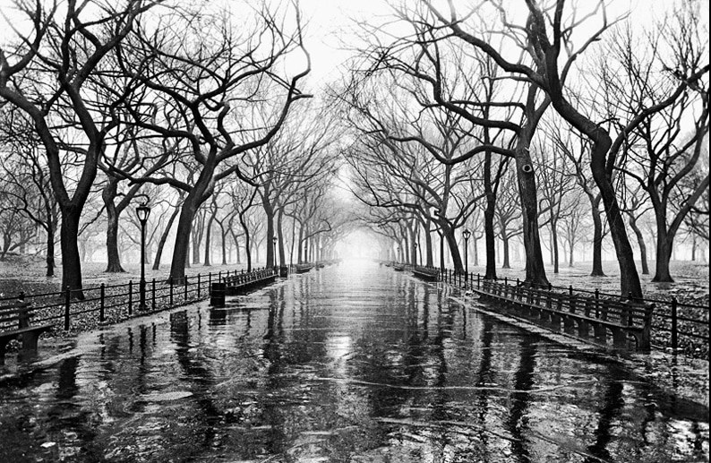 On a cold, rainy January afternoon I was crossing Central Park when I noticed there wasn’t a soul in sight. I had, for the first time in my life, the park all to myself. I stopped and looked up the famous Mall, a formal promenade forty feet wide, but I didn’t see anyone. An afternoon fog had settled in, shrouding the park and separating it from the tall, gray, city buildings which always surround it. Central Park had been transformed. Without its noisy inhabitants, its joggers and strollers and dogs, and without its familiar urban borders, Central Park had been reduced to the purity of an architectural idea, which of course is what it was before it was built—evenly spaced elm trees, branches arching over a wide path, and a wonderfully long, vanishing perspective that, on this day alone, created the illusion of a bright light at the end of a tunnel.