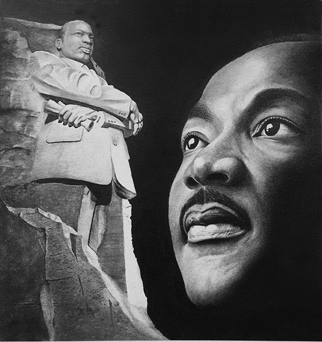 Detail pencil portrait on paper of Dr. Martin Luther King