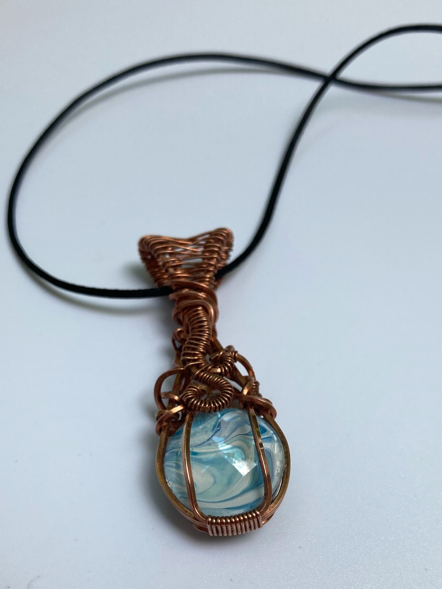 - Subject Matter: Abstract Art in a Wire Wrapped Pendant
