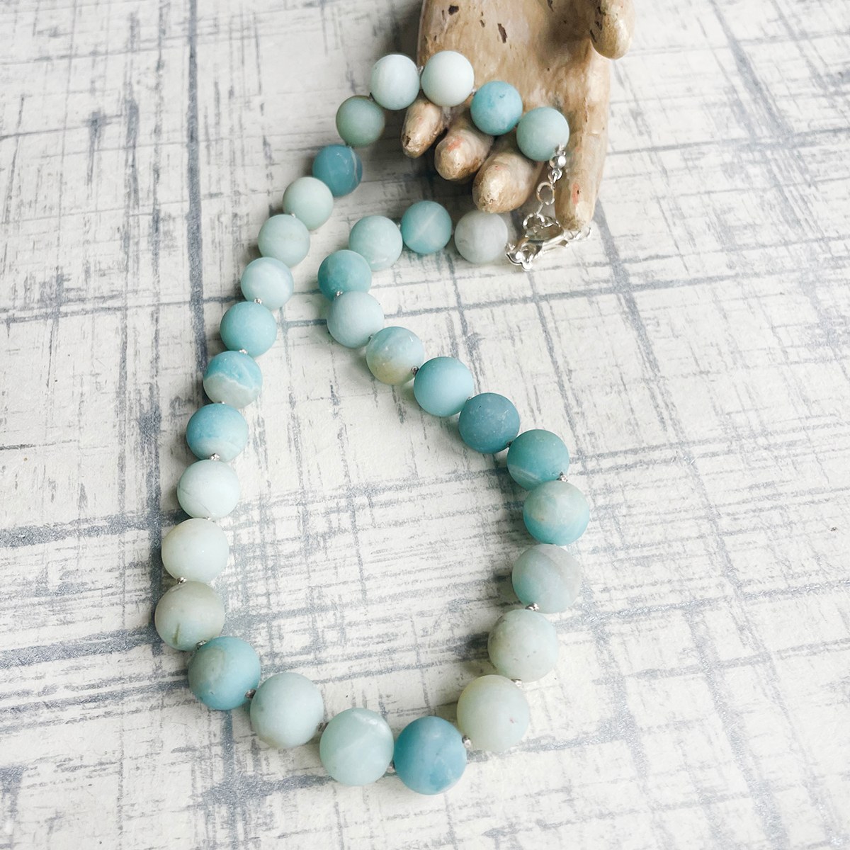 Hand knotted on silk, this ammonite necklace adjusts from 17" to 19" in length. Sterling clasp and chain.
