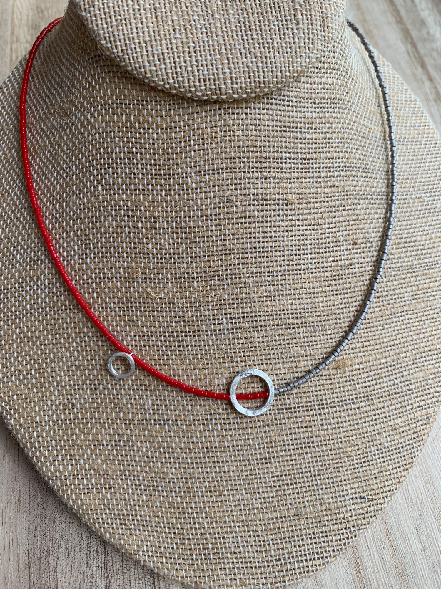 Modern and minimalist necklace made in solid Sterling silver with a matte finish and Japanese seed beads with a magnetic Sterling silver clasp.