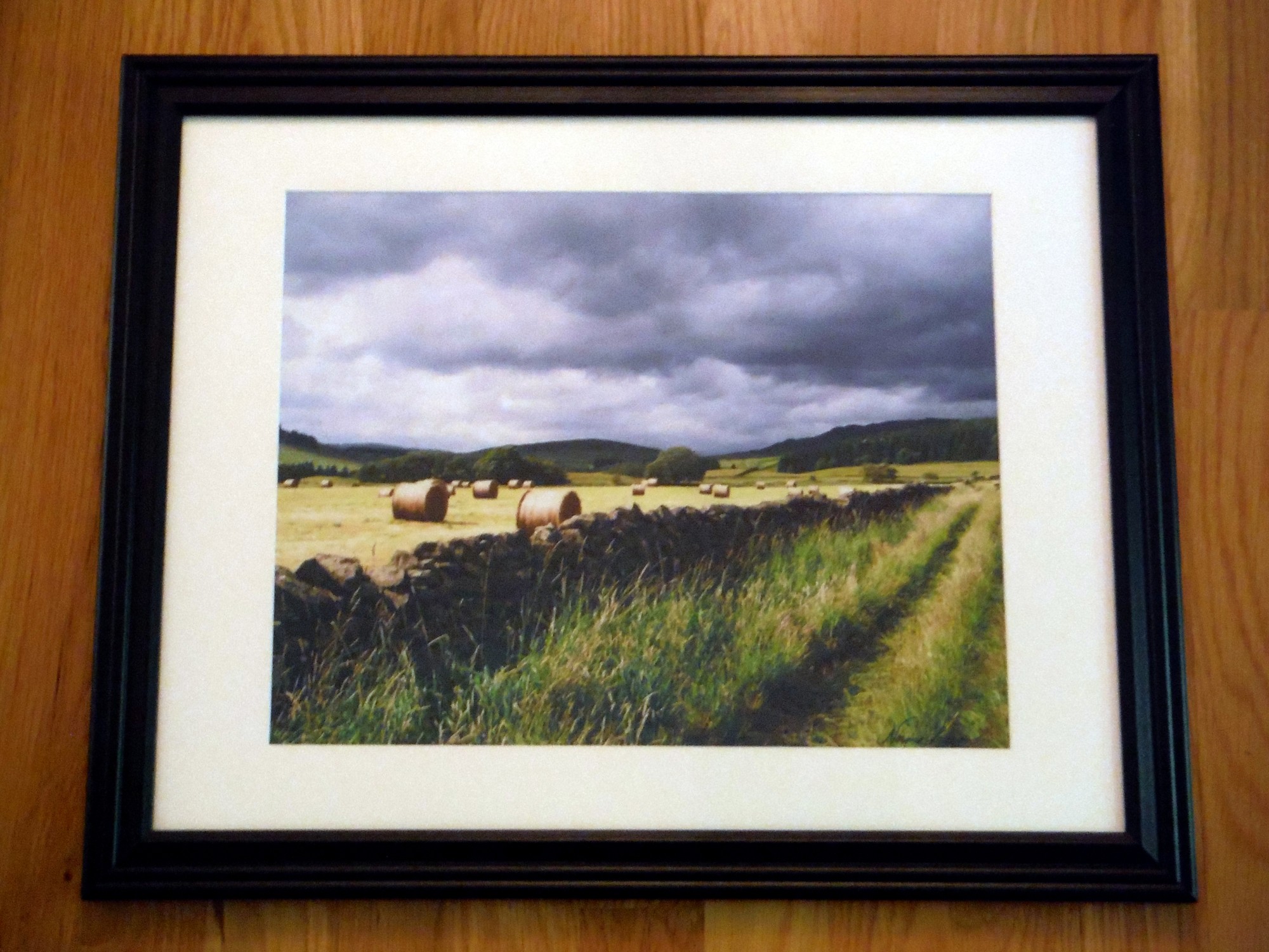- Subject Matter: Storm clouds and hay rolls in field in southern Scotland