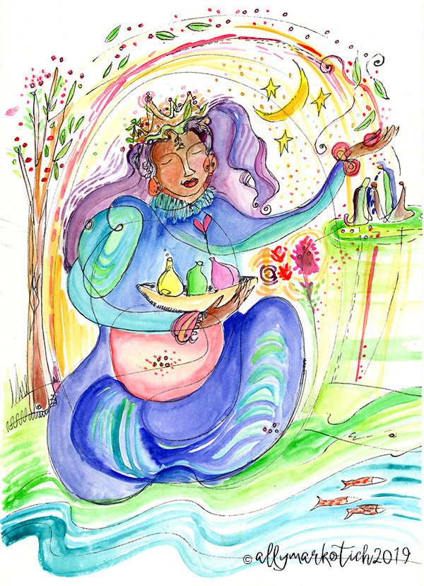 - Subject Matter: Whimsical sacred feminine, spirited connection