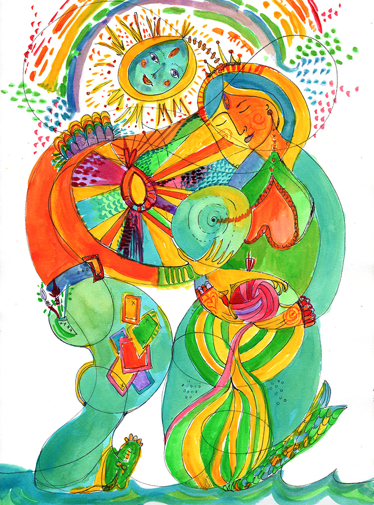 - Subject Matter: Whimsical sacred feminine, spirited connection