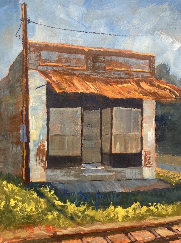 This image is a representation of the old Pony Express Station in Demopolis, AL and represents another anchor point in the artist’s life: digging into the history of the buildings he paints. Before he painted this, the artist did copious research on the building which led to a greater understanding and breathed life into this painting leading to his first art exhibit.