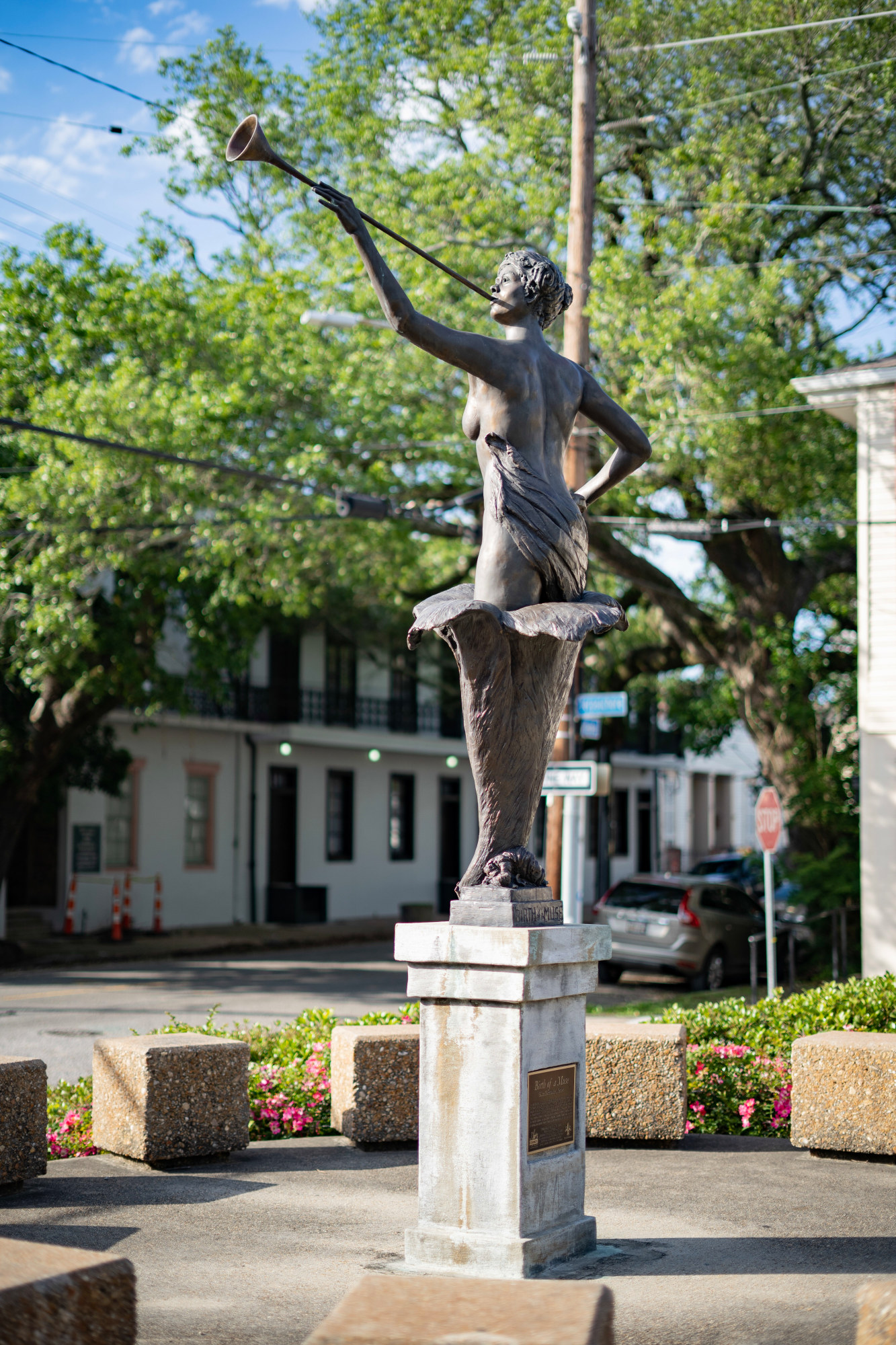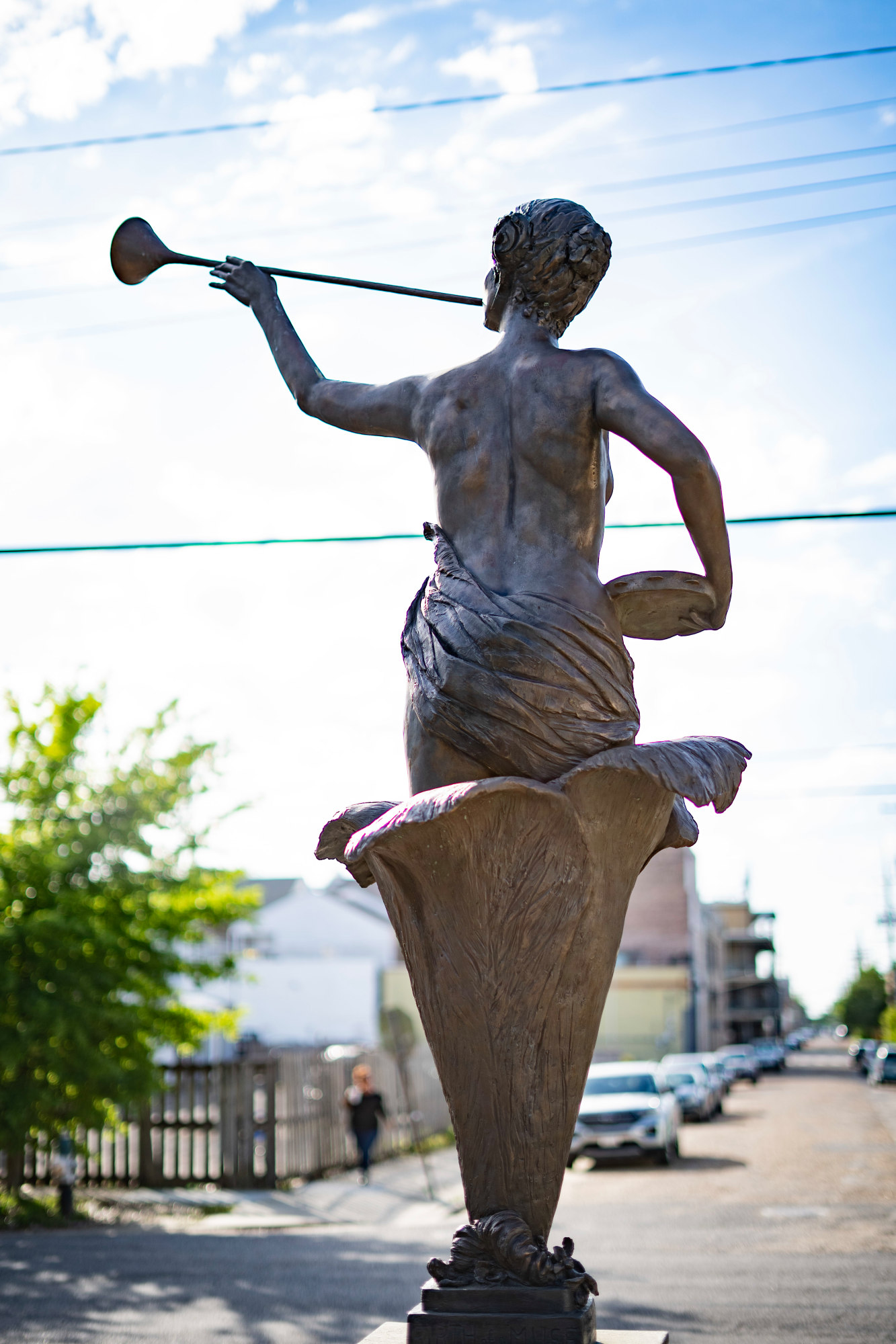 "Birth of a Muse" is a cast bronze figure representing Terpsichore, one of the nine muses who are the namesakes of the Lower Garden District neighborhood. Bernadas explains: