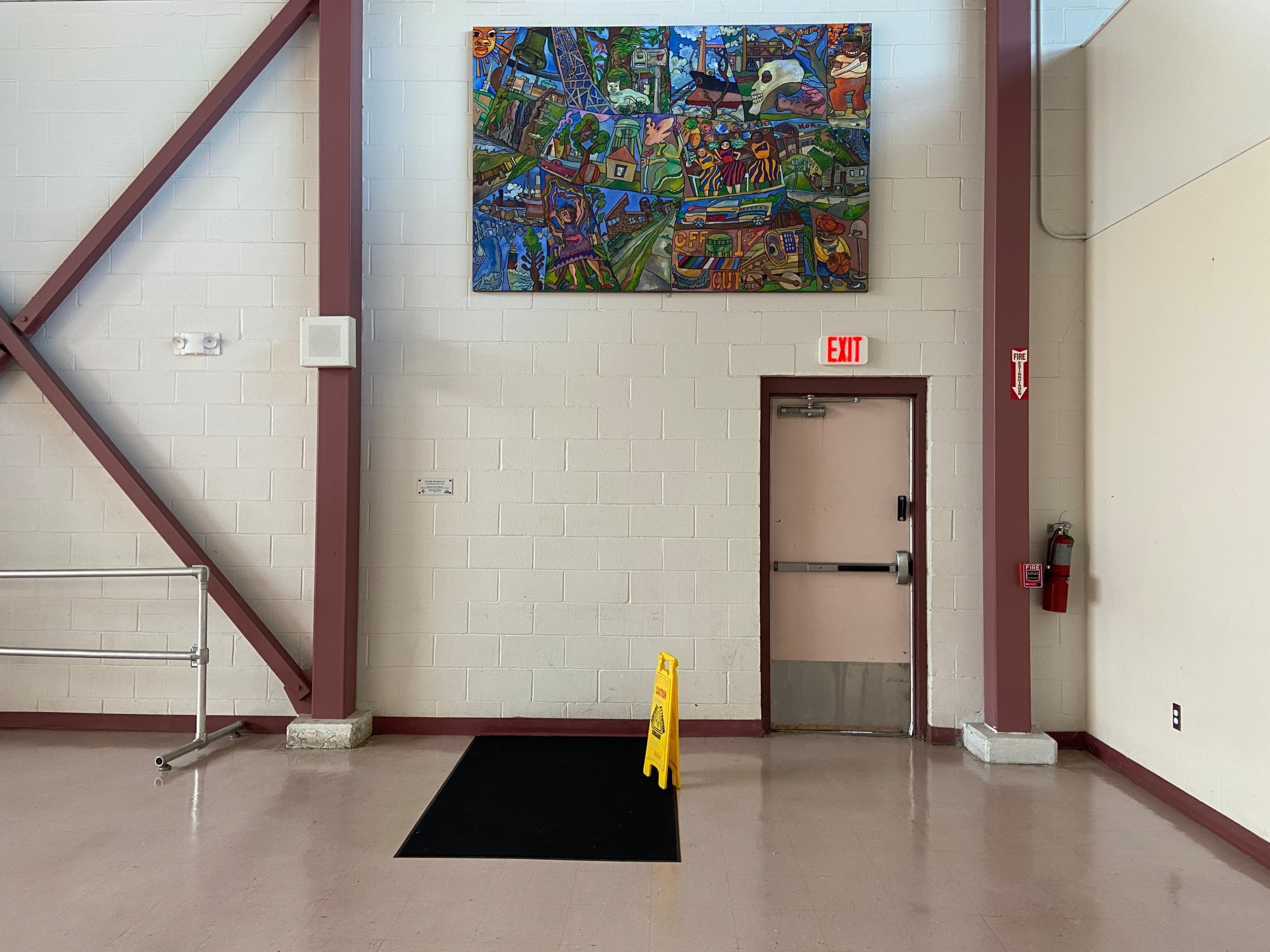 Larry Nevil, a native of the area, has created a series of four large paintings that capture the mood of Cut-Off, reflecting the past, present and future of the community. Nevil uses a wide variety of imagery collected over his lifetime, including portraits of family members, spiritual symbols like the ringing church bell, local landmarks, as well as sports and music, all intertwined to make-up a larger portrait of the area.