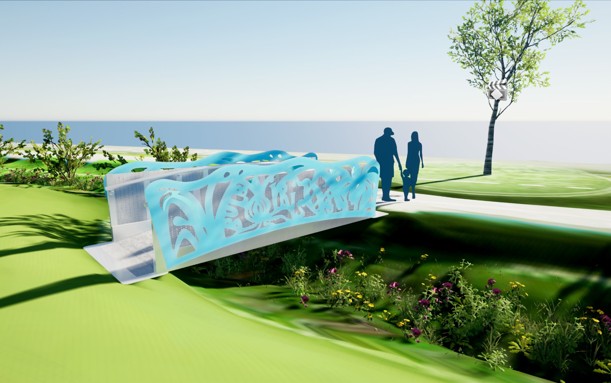 “Footbridge Over the Bioswale” is an artwork and functional footbridge that will cross over a 15-foot wide bioswale encircling Filmore Park. Cut and painted metal relief panels mounted to the sides of the footbridge will show images and text that bring attention to the park’s new features of water management. Neighborhood residents will be co-producers in the design process, participating in the creation of a visual narrative that builds deeper understanding about living with water. As a visual focal point, the footbridge will engage the themes of biodiversity, water management and environmental stewardship, while serving a functional purpose of protecting the bioswale from damage.