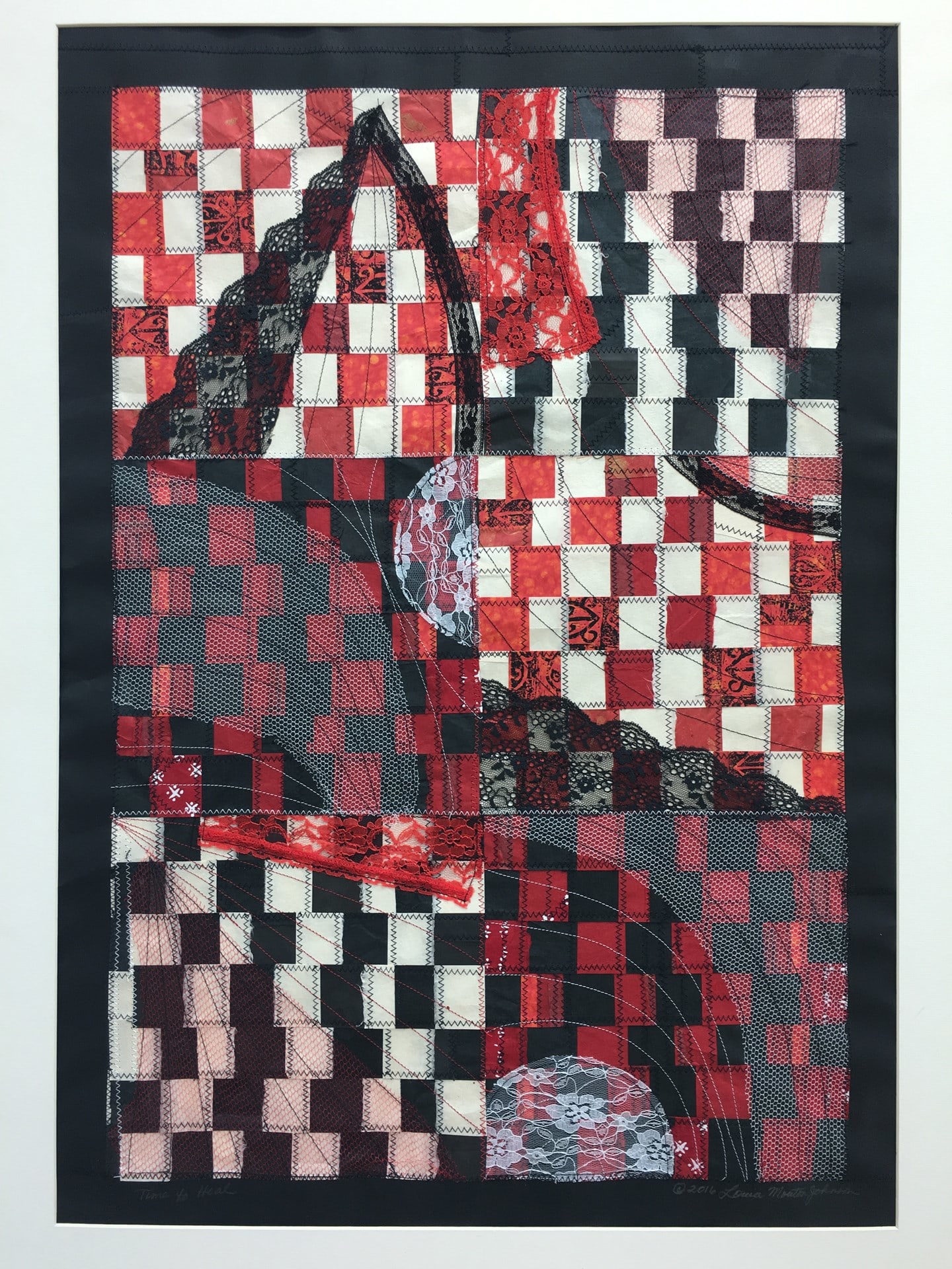 In some of my most recent work, I’ve combined a practice in quilt making of using scraps of leftover fabric with recycled quality art paper from discarded prints (nothing goes to waste!) into what I describe as “quilted paper.” This is a process I started working with after the levees breached in August 2005 and began a series entitled Unfinished Business. The idea of unfinished business refers to life before and after the storm on many levels, not all necessarily negative.