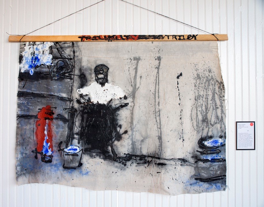 This drip painting is derived from photographs of a woman washing outside. The image resonates strongly with the Black experience showing not only our ingenuity but our creativity of navigating cities that didn't often make space for us. Despite our individual ethnicities we find a community and these ways of survival. I represent these people using materials that would resonate with them and with people of the present who are still living in such conditions.