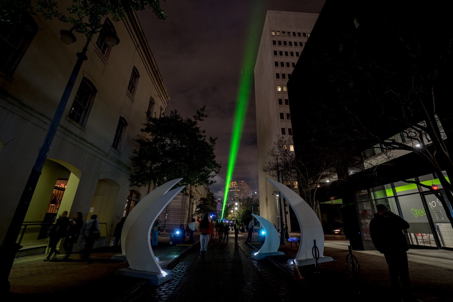 An illuminated and interactive corridor that brings whimsy and joy to those of all ages. Life-size crescents shapes contain projections of LUNA Five Collective animated performances and puppet silhouettes which provide a dynamic and relatable greeting while reacting to the crowd around them.