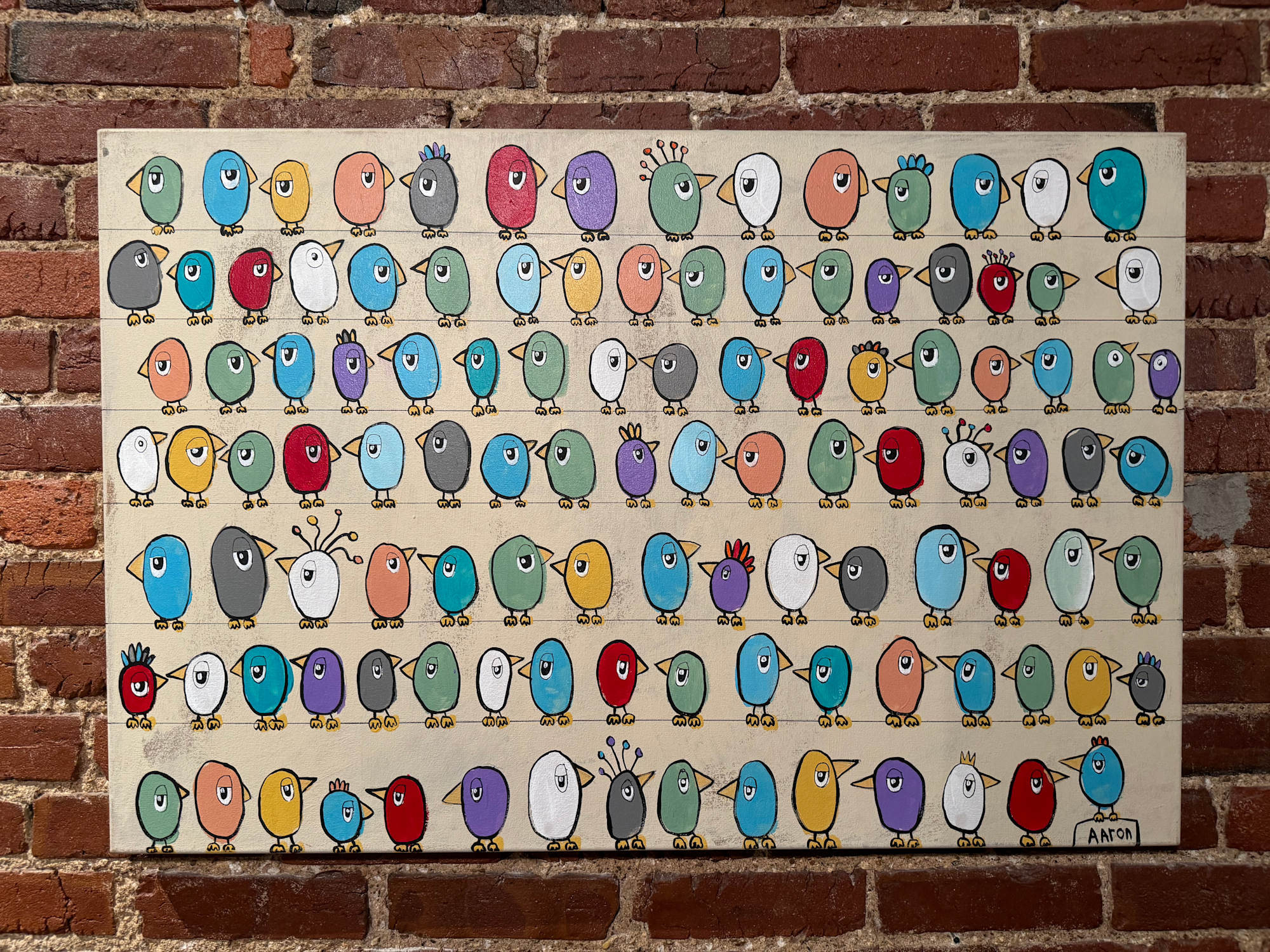"I make art as a way to connect to people who feel unseen, in a way that shows them that they matter and are not alone. Using acrylic on canvas, I create images inspired by drawings I made when I was a kid – like birds, umbrellas, and jelly bean trees – speaking a language familiar to both children and adults." Aaron was a 2018 participant in the Nashville Arts and Business Council’s PERISCOPE Artist Entrepreneur Training cohort, and won first place in the Periscope Pitch competition at Oz Arts Nashville. He lives and works with his wife and son just outside Nashville, Tennessee.