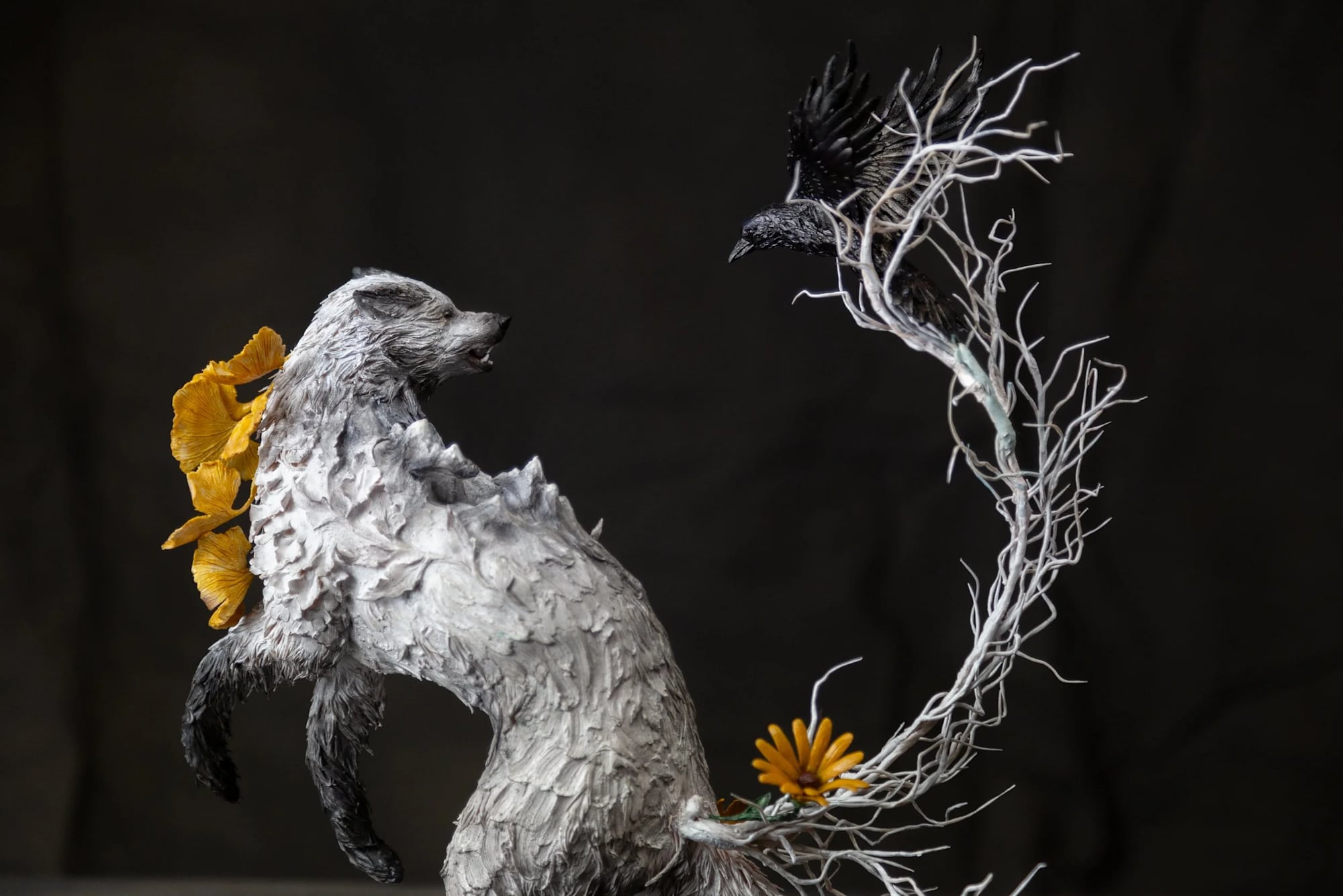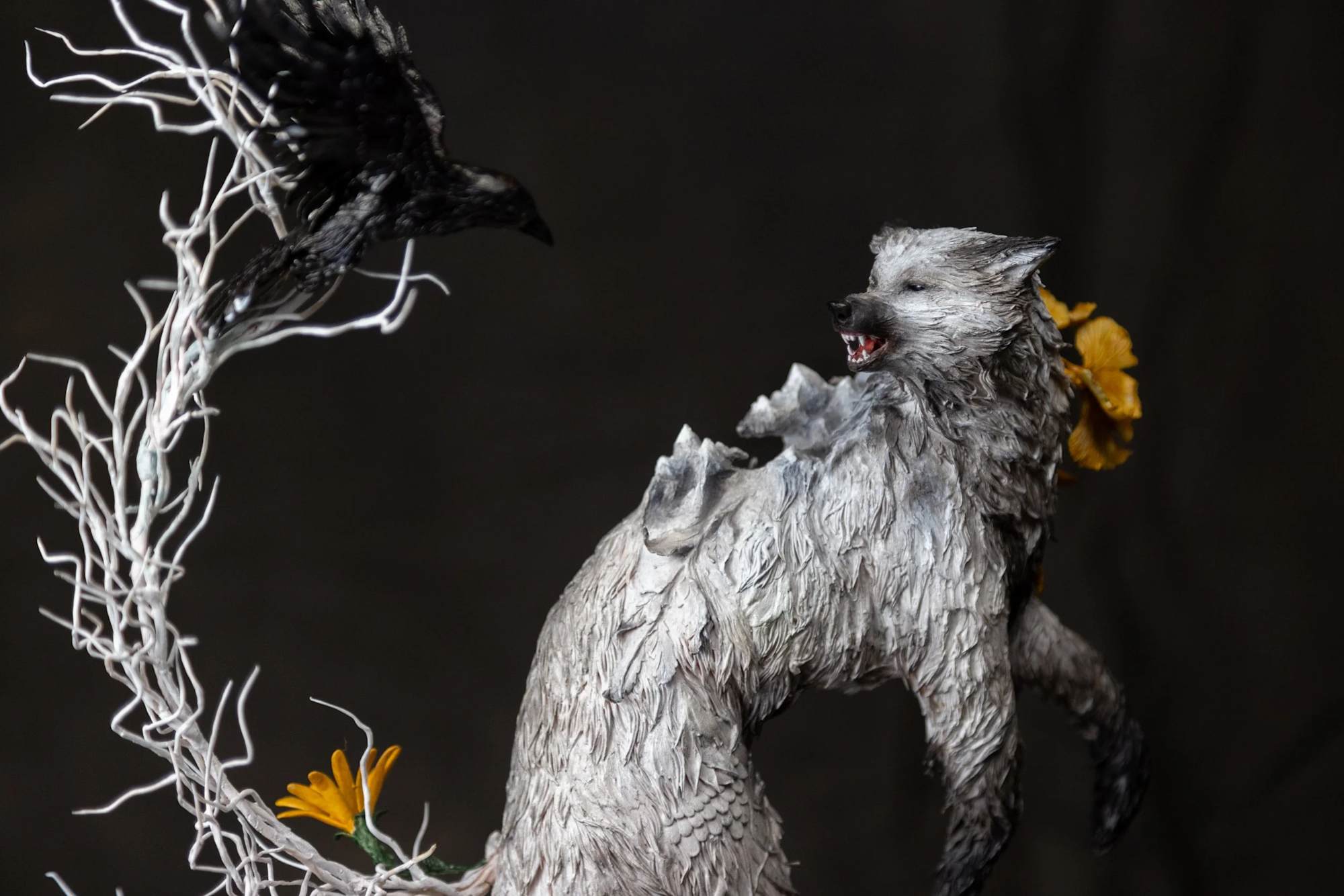 Wolves and ravens have a symbiotic relationship in the wild. They are known to even play together. But in this piece, I wanted to convey a feeling of betrayal between two entities to showcase the poignant feeling of loss and treachery we feel when we are let down by those who should normally be on our side.