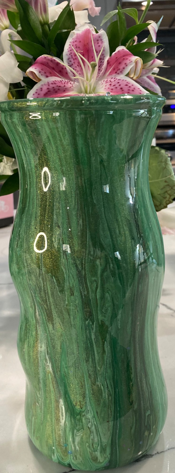 Each one an original. Custom painted glass vase sealed with resin. Beautiful, durable, and functional.