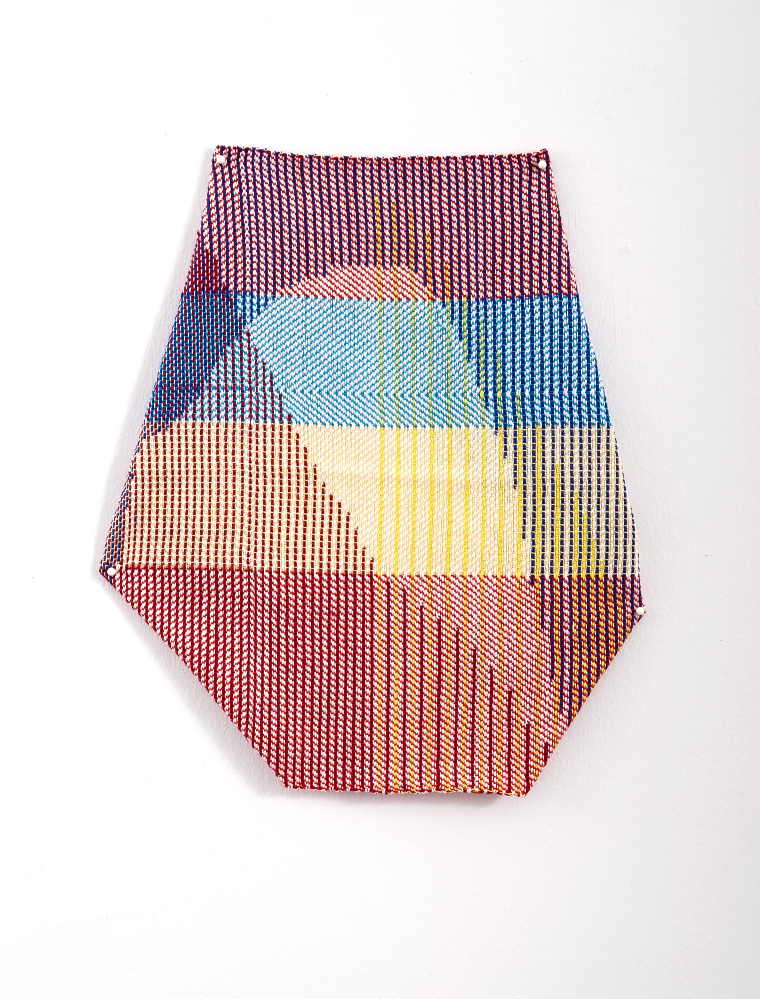 Refer to image for where to pin. Make sure the fringe from the back doesn't show when it's hung.