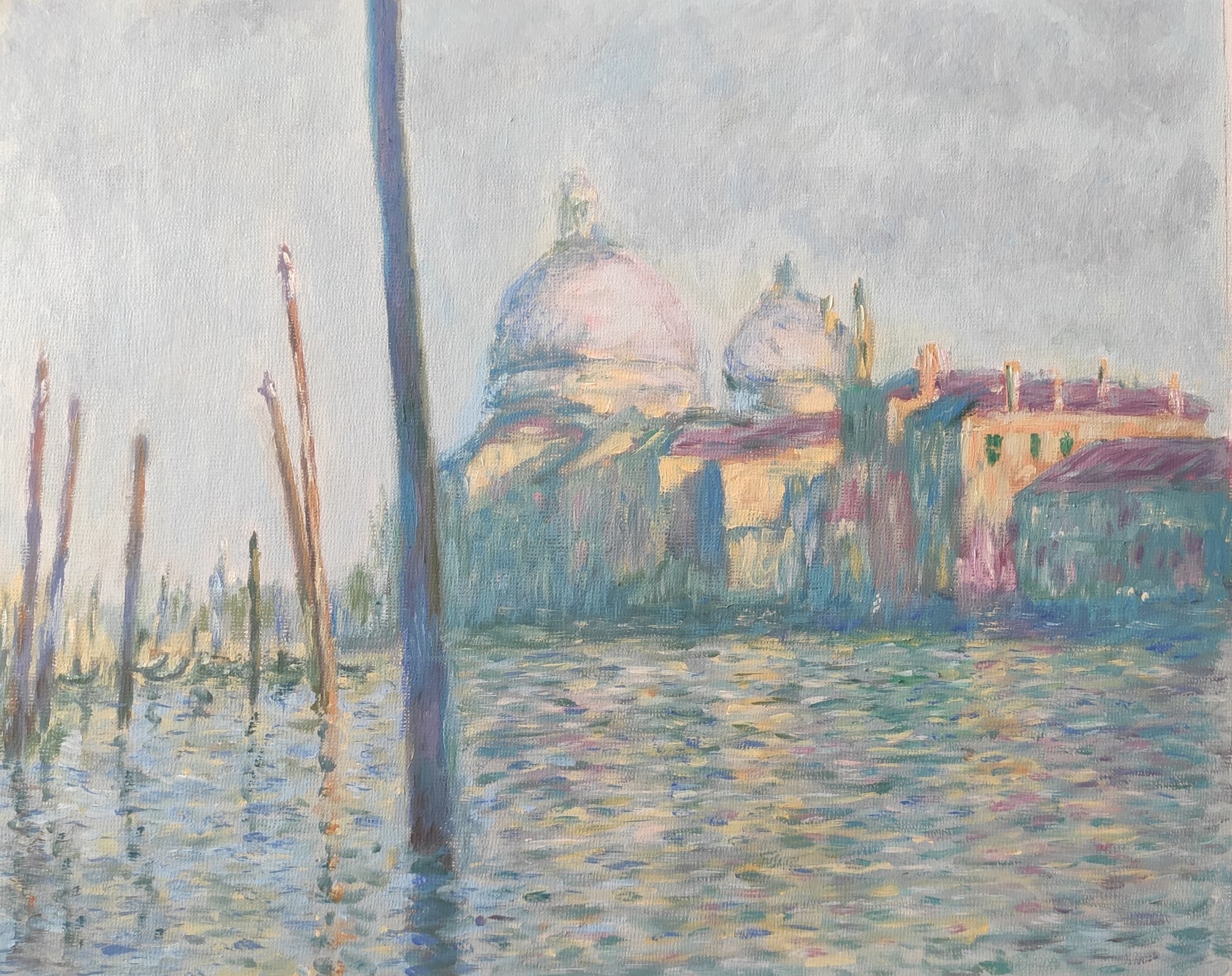 This copy revisits Monet’s impressionist vision of Venice, where architecture dissolves into luminous reflections on the water. With fluid brushwork and delicate color shifts, the painting captures the fleeting impression of light that was central to Monet’s style. Through this study, I explored his atmospheric approach to form and his mastery of optical vibration.