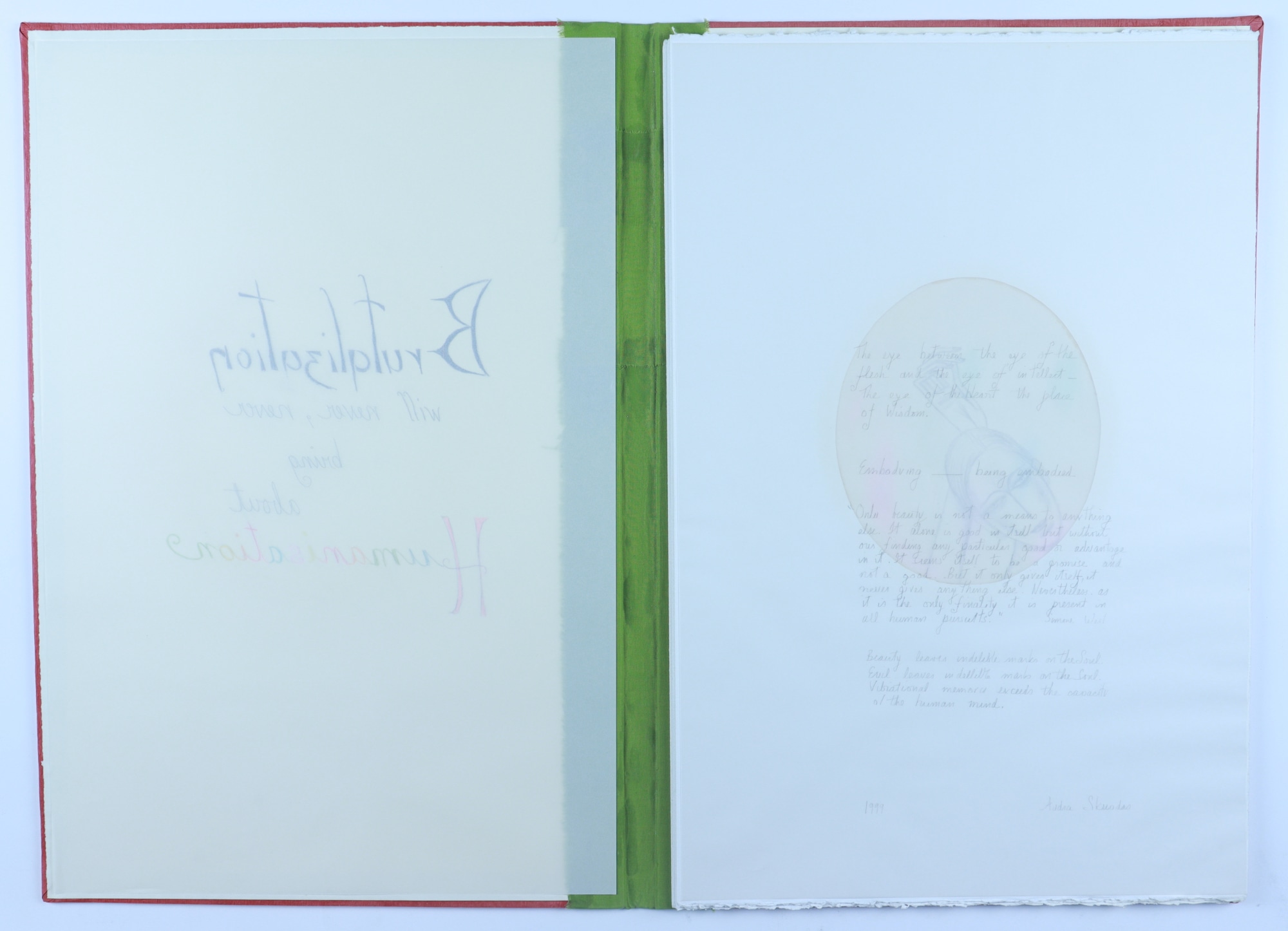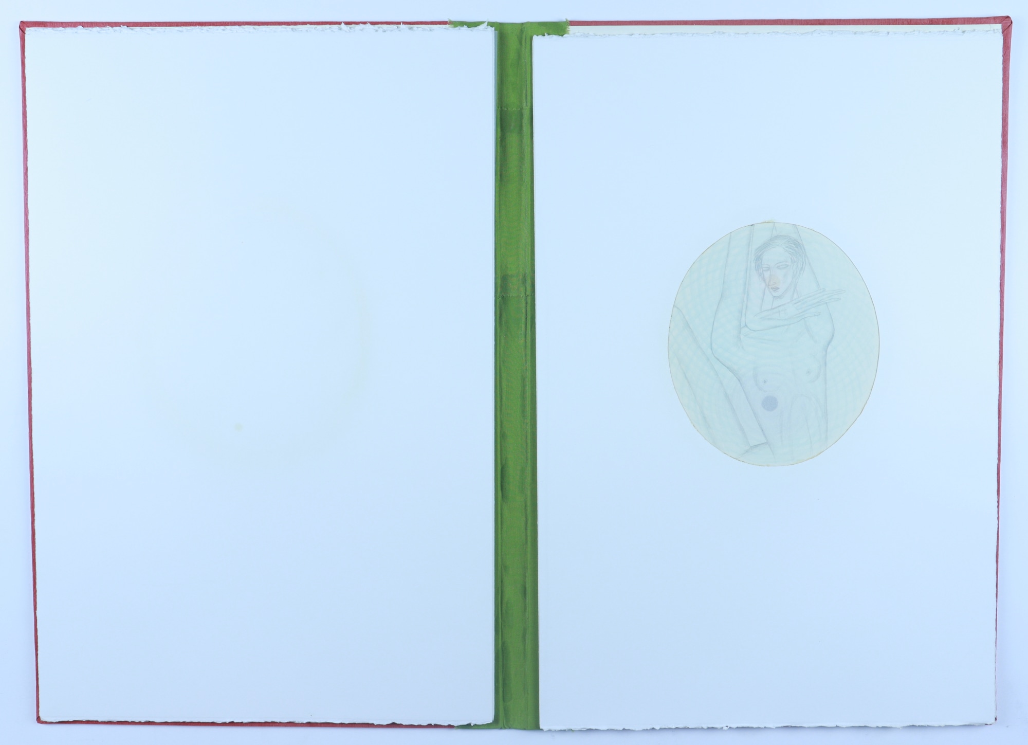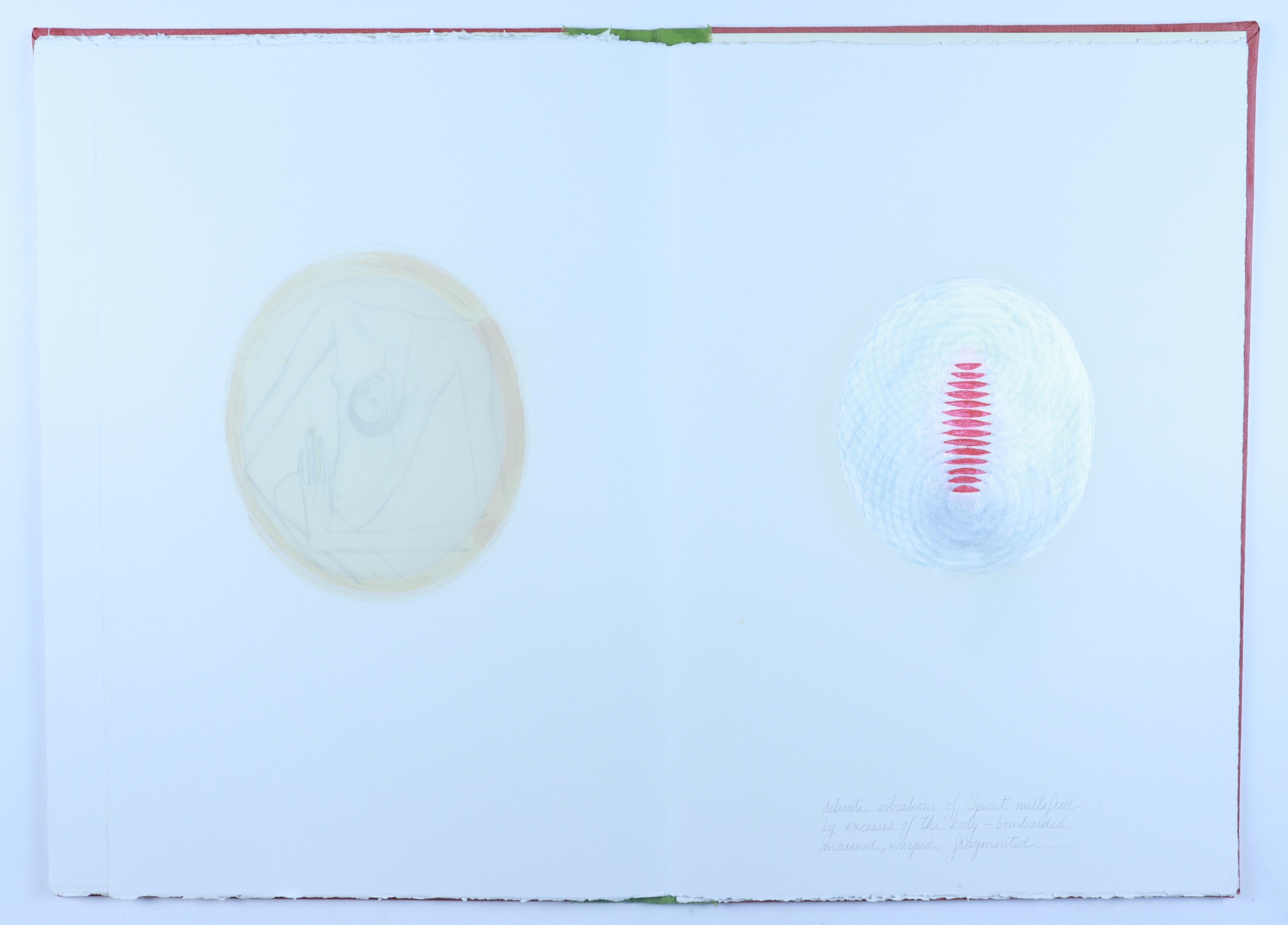 Color pencil, graphite pencil, vellum, patterend paper, rag paper, fabric, foam core, irridescent acrylic paint