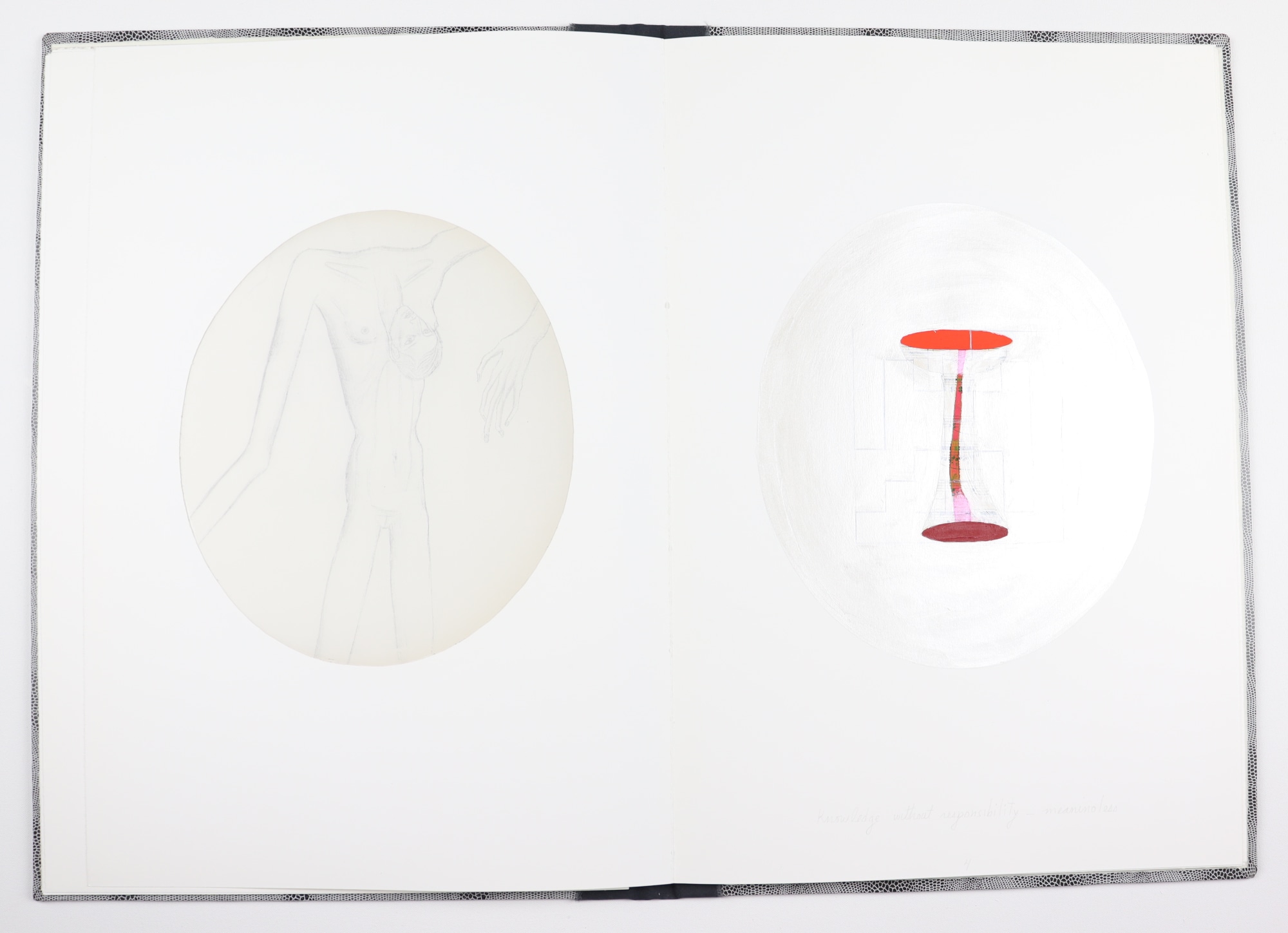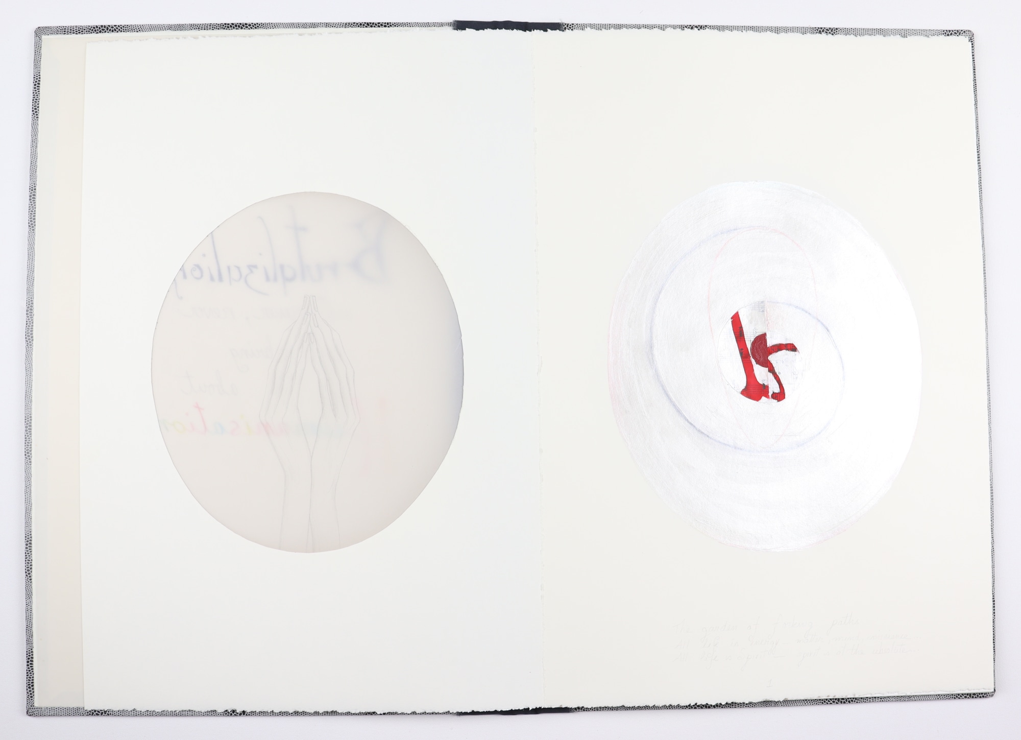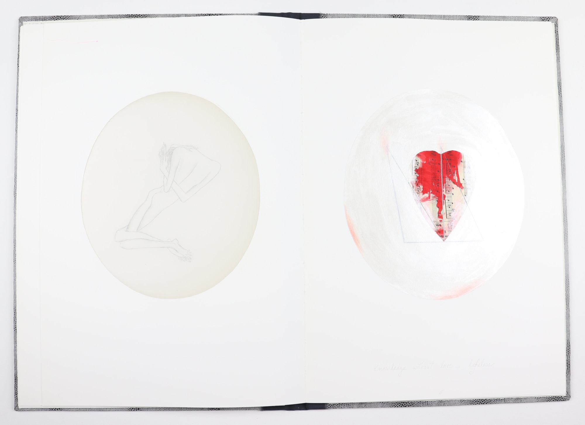 Hand made and bound artist book with hand drawn illustrations and text by artist