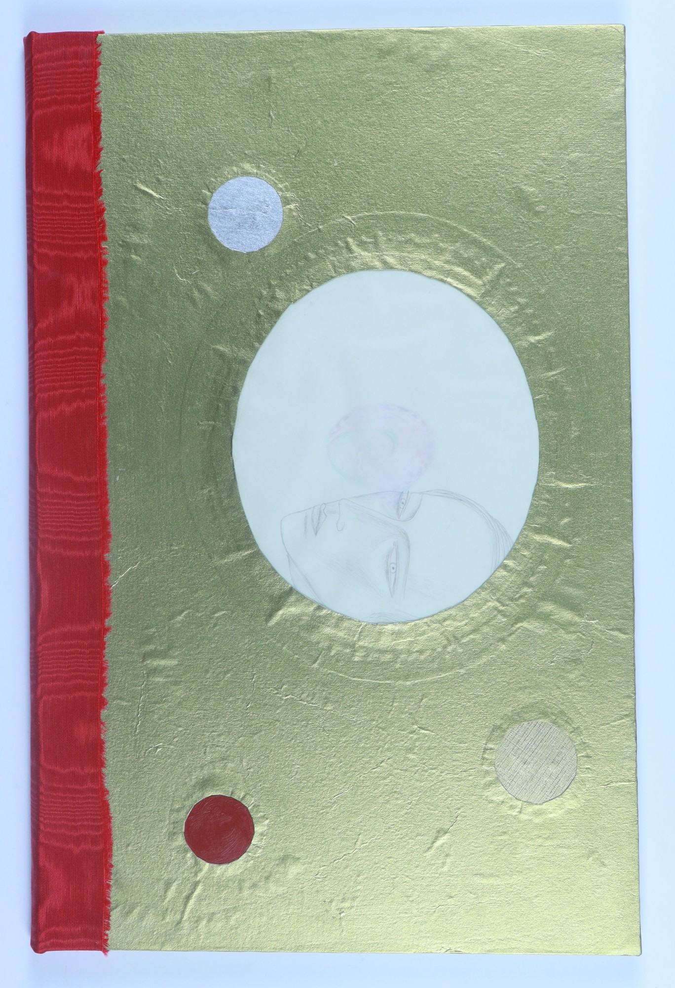Gold paper, cloth, foam core, vellum, graphite pencil, printed papers, musical score, colored pencil
