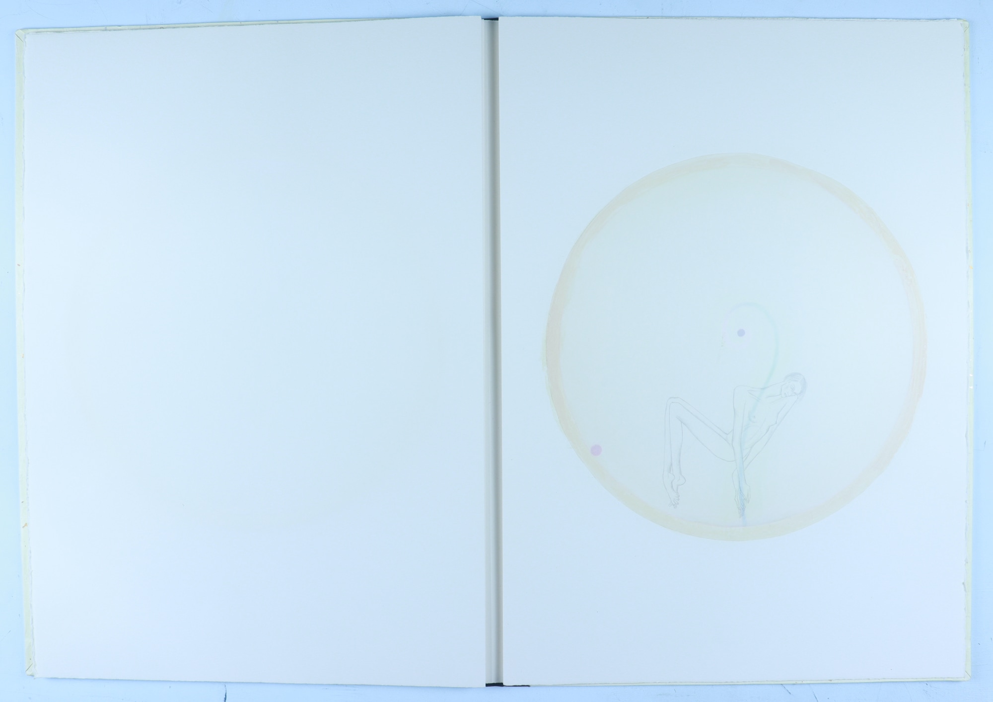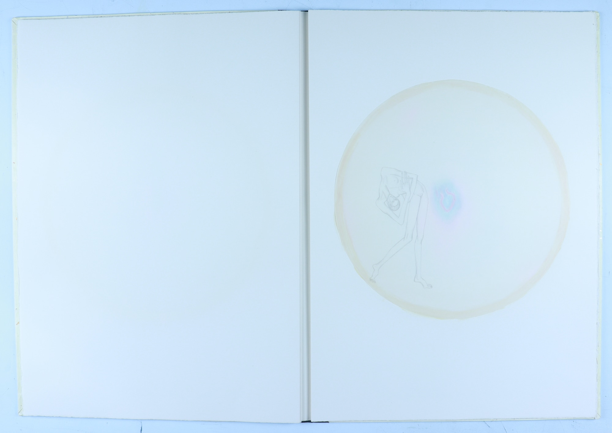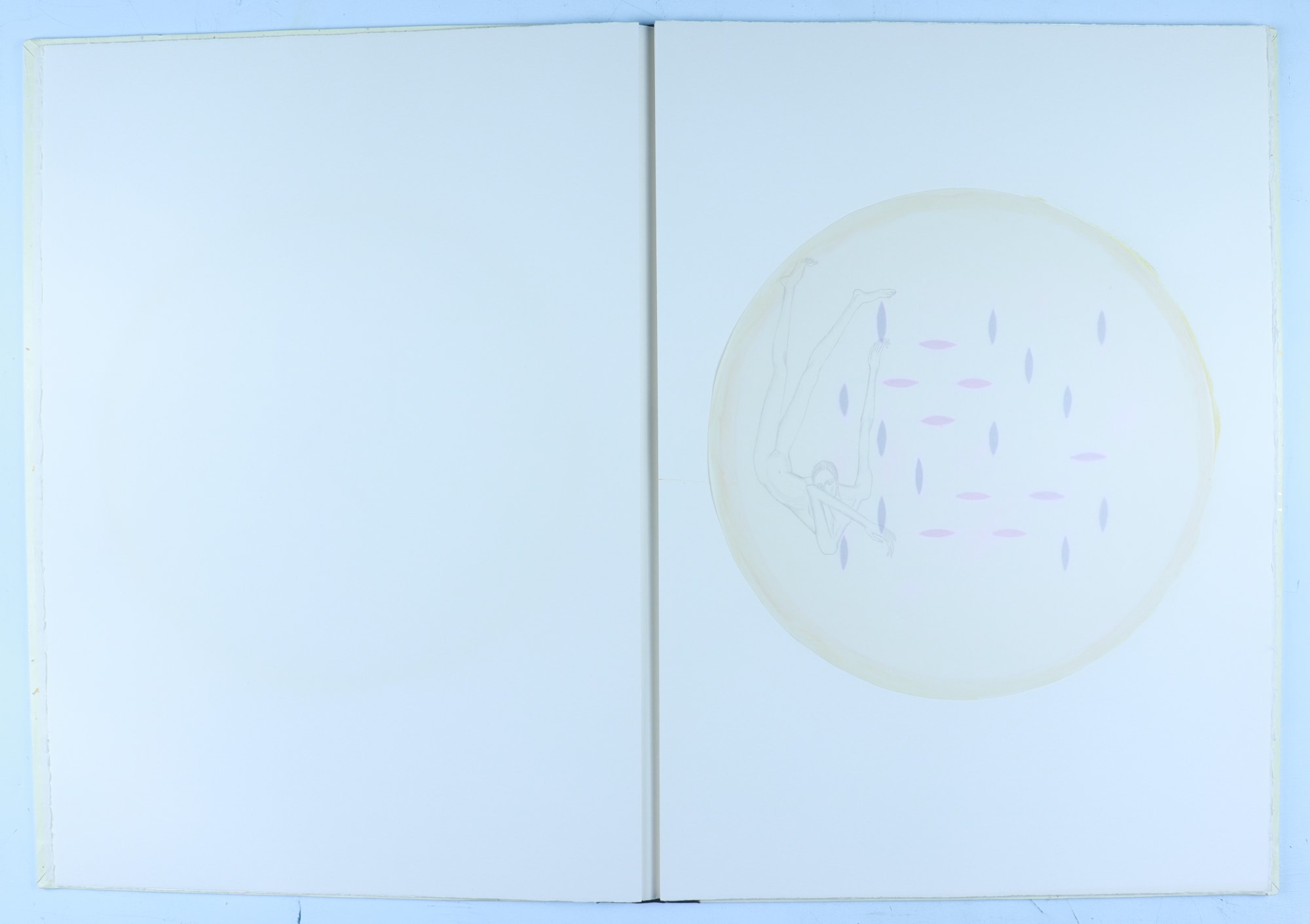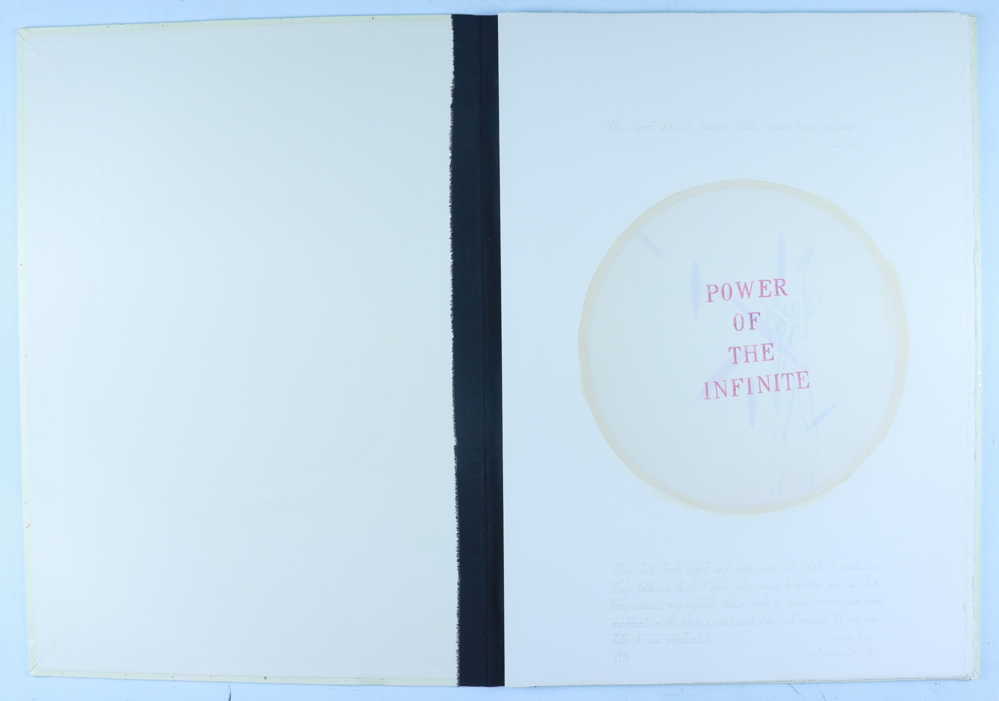Acrylic paint, irridescent acrylic paint, vellum, archival paper, handmade paper, red ink, graphite pencil