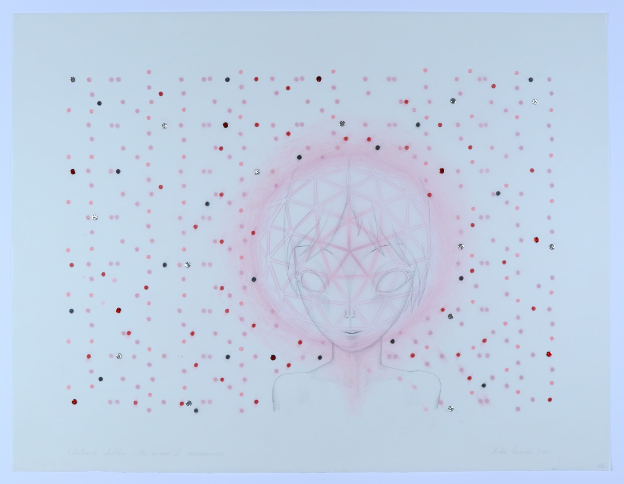 vellum, color pencil, graphite, vintage musical score, red ink, glitter stickers