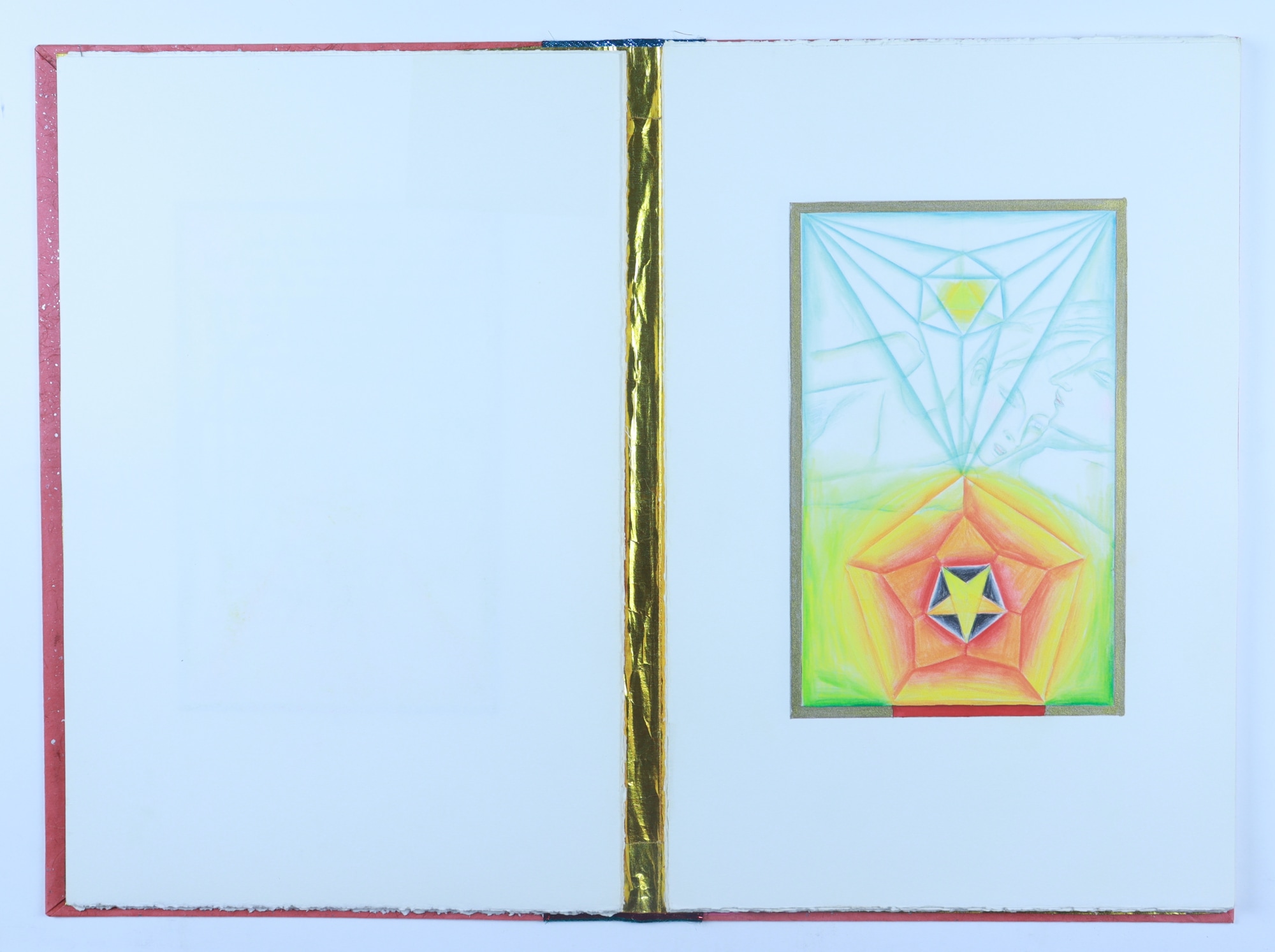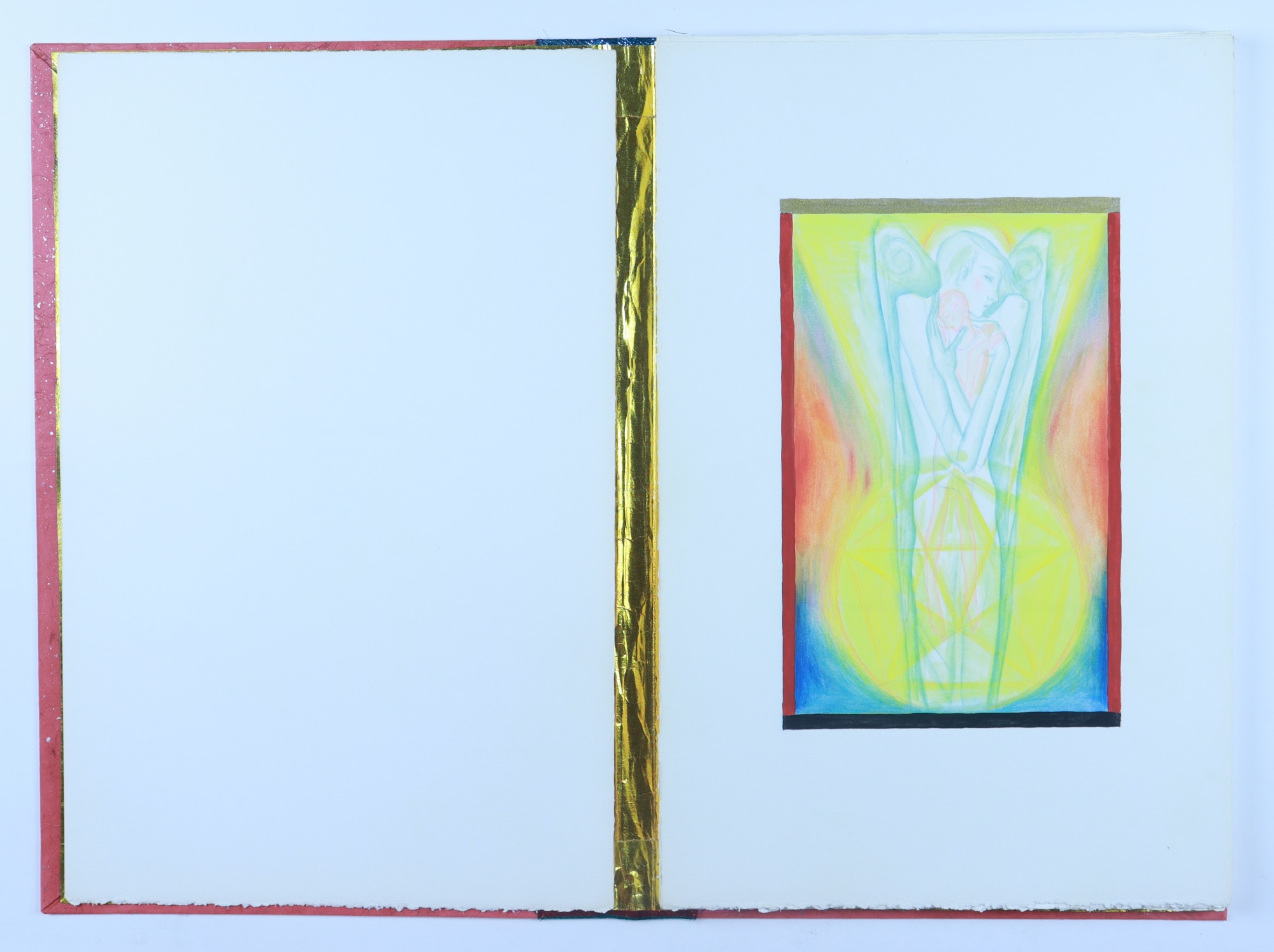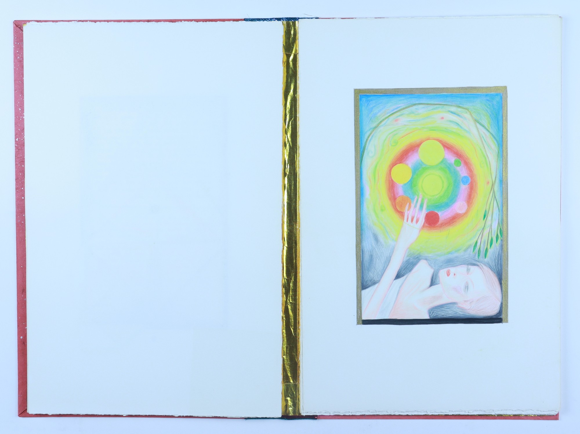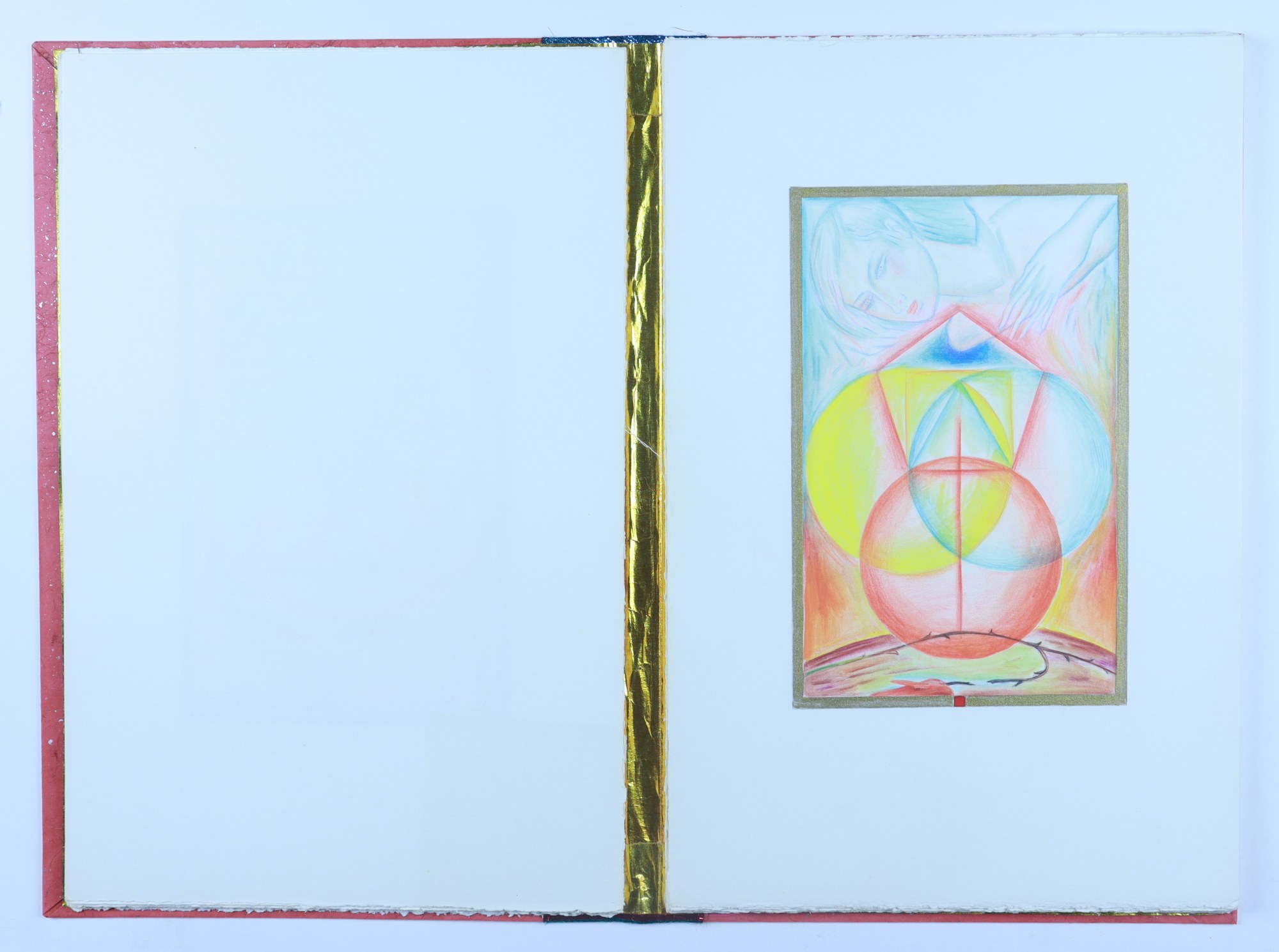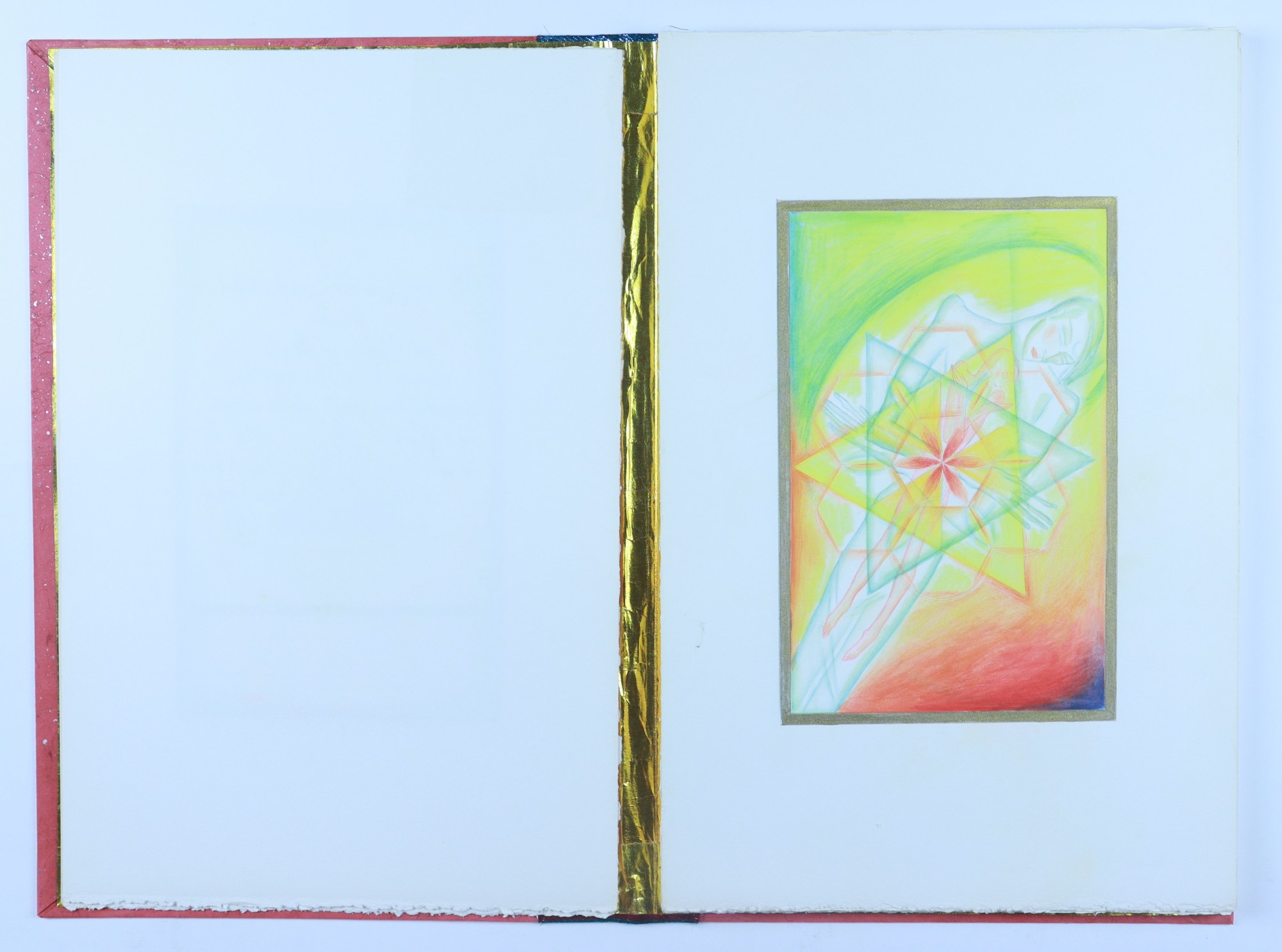 water color pencil, fabric, graphite pencil, rag paper, matt board