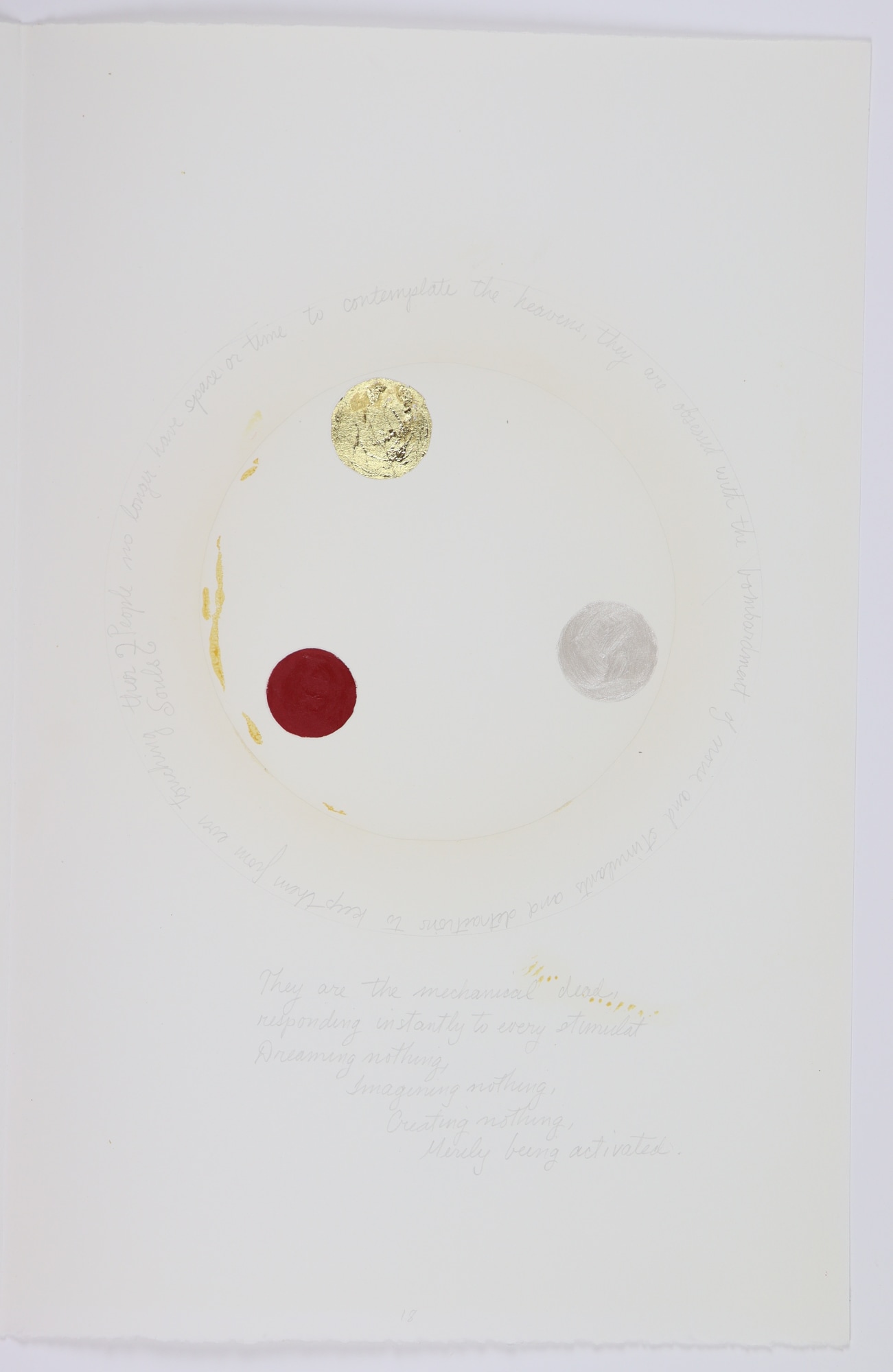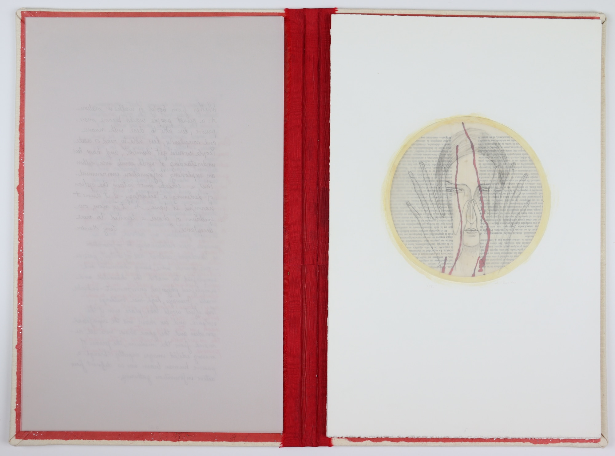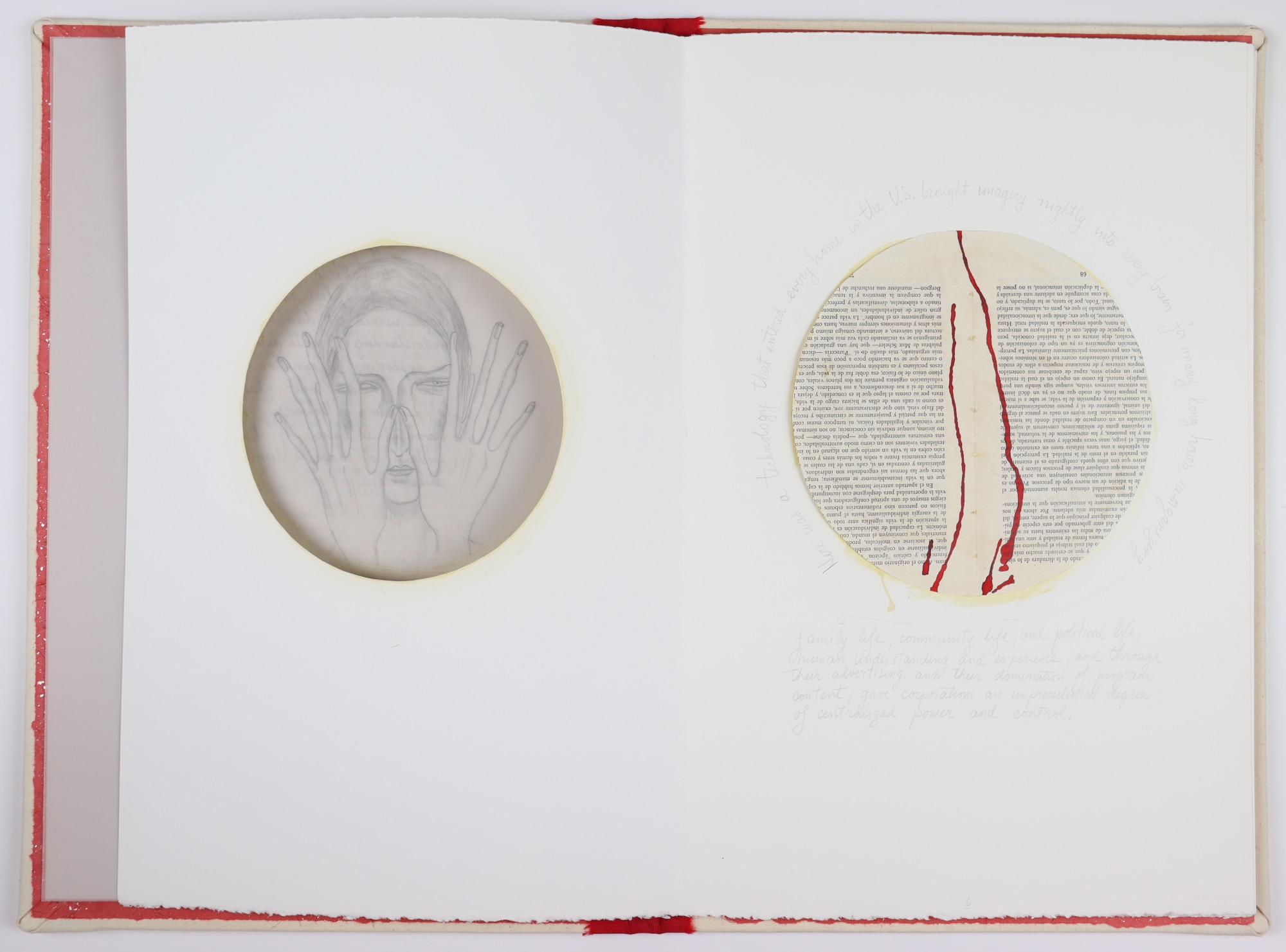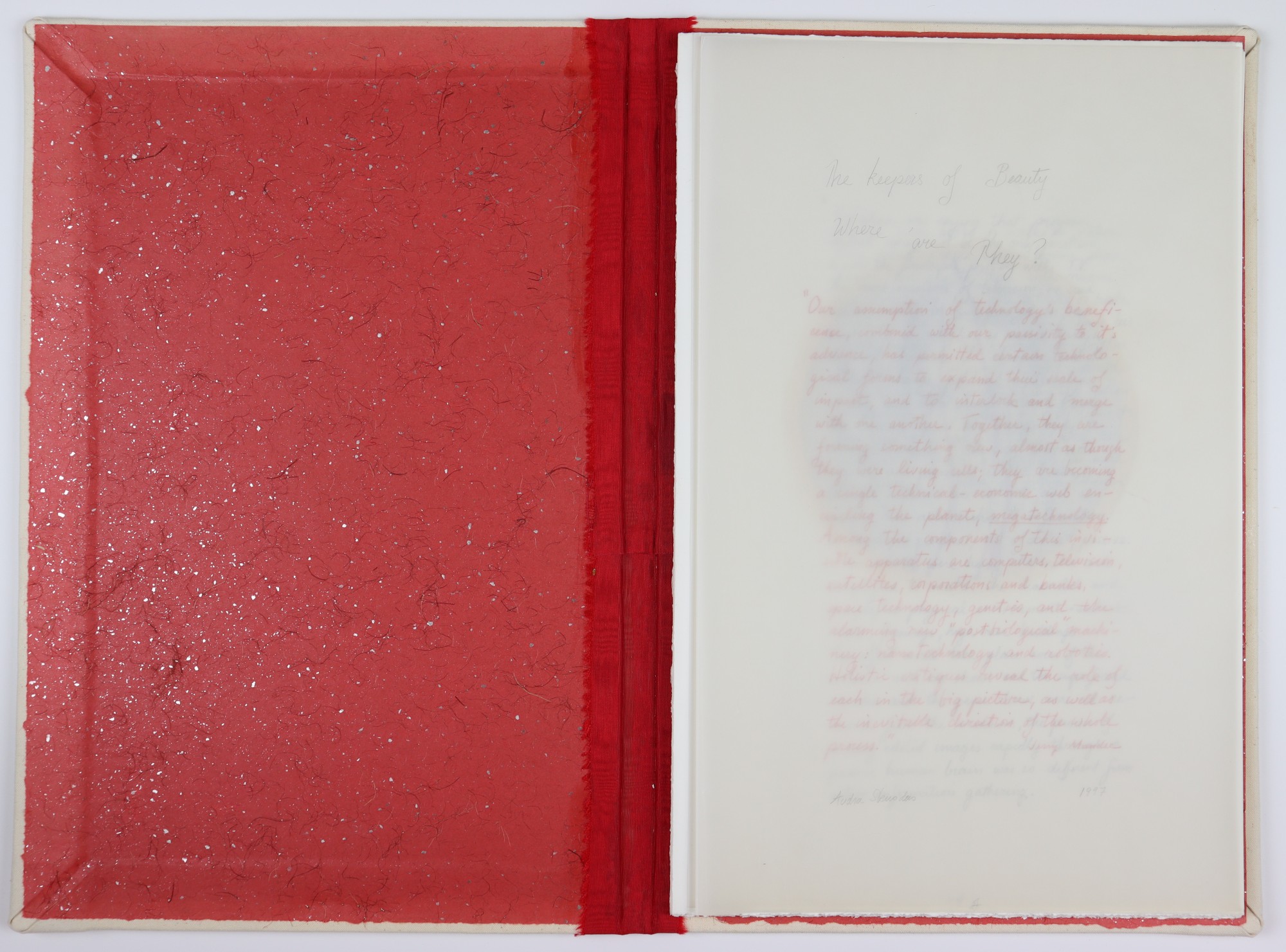 Handbound and illustrated artist book with vellum image overlay and copmpilation of artist text and quotations from Jerry Mander.