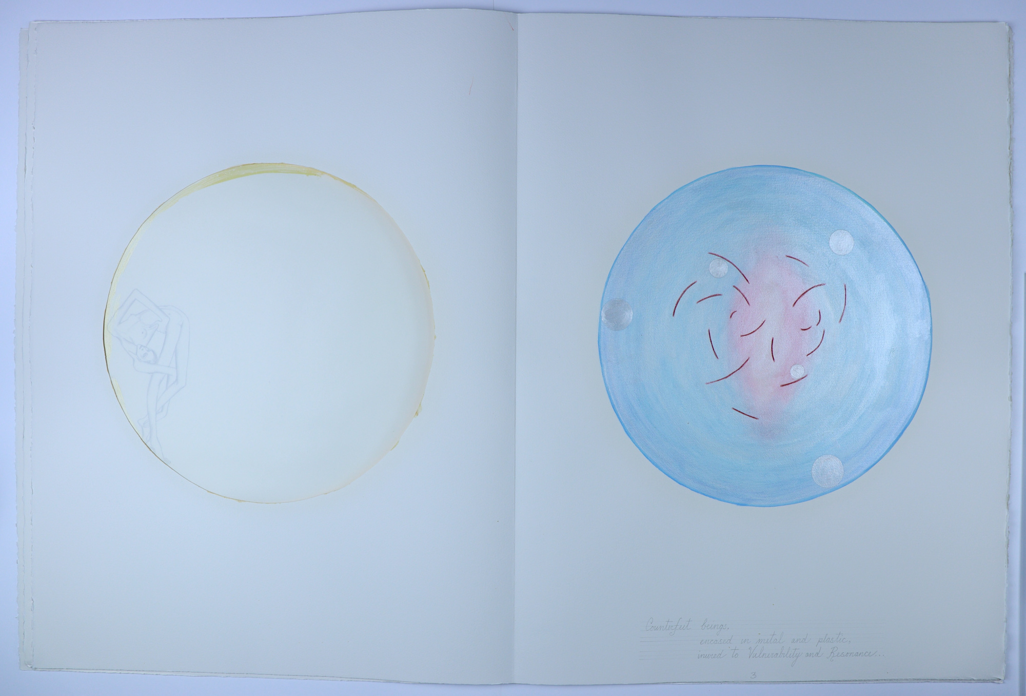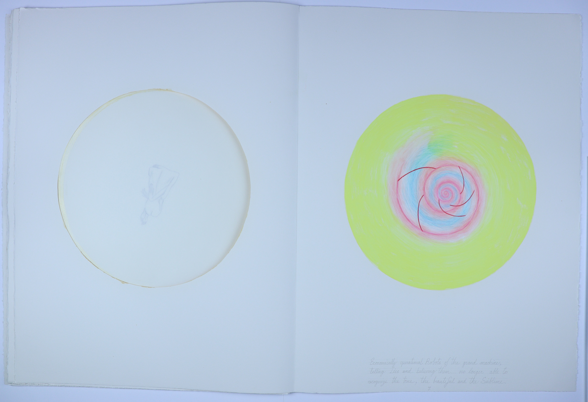 non-archival glue used -- yellowing and vellum overlays coming unstuck