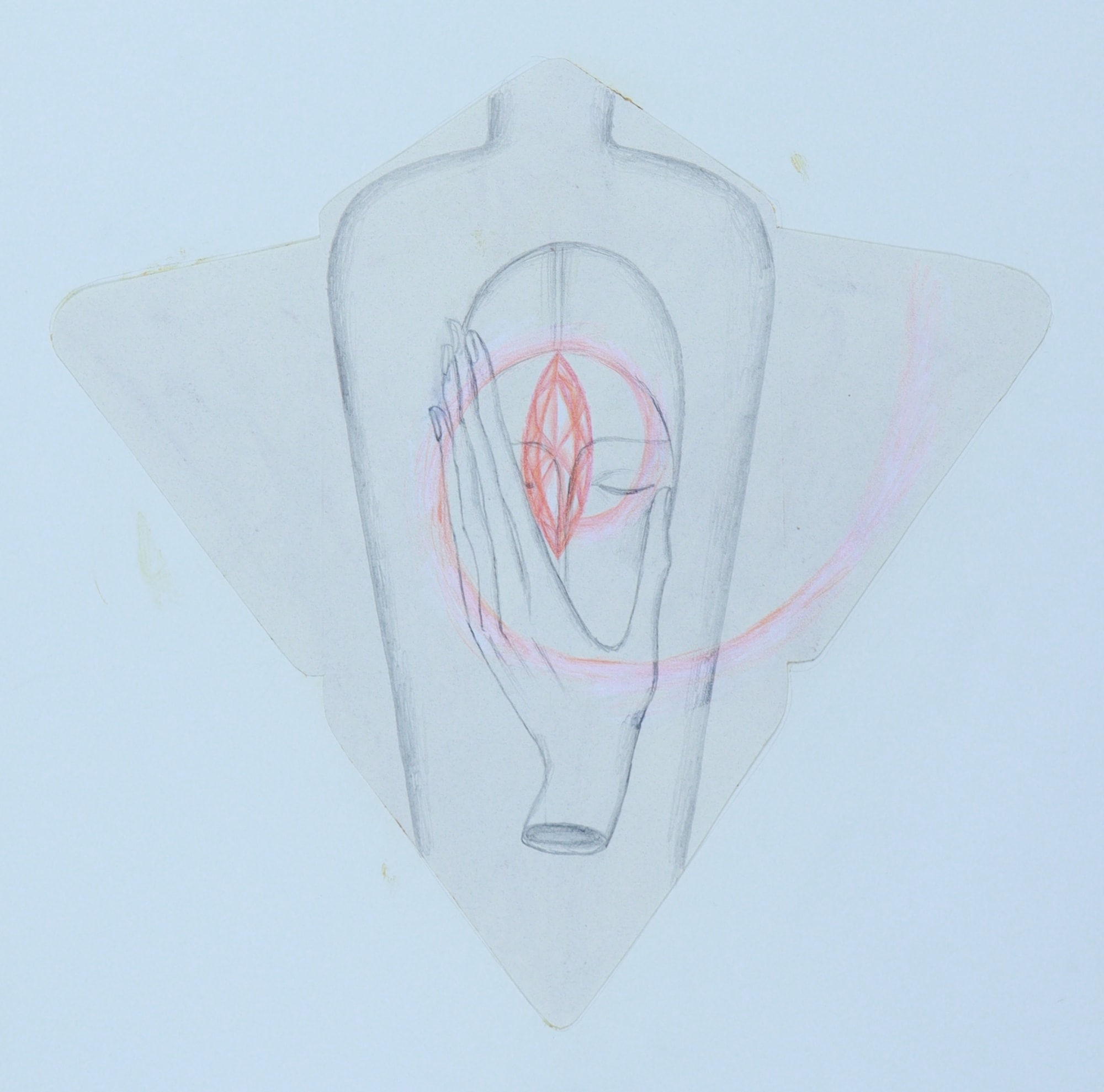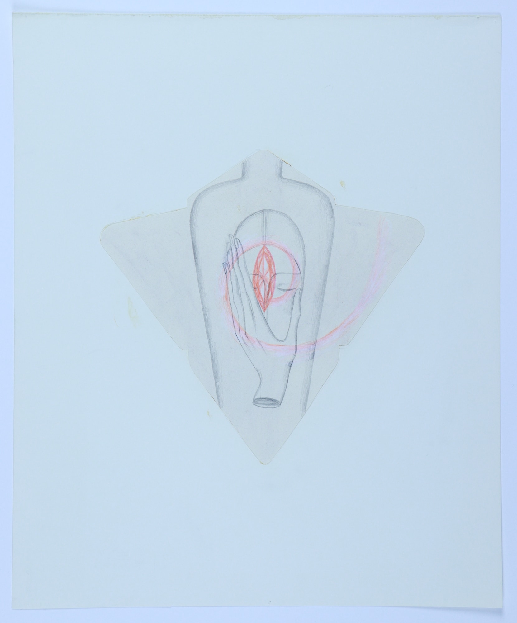 color pencil and graphite on stencil cutout of envelope
