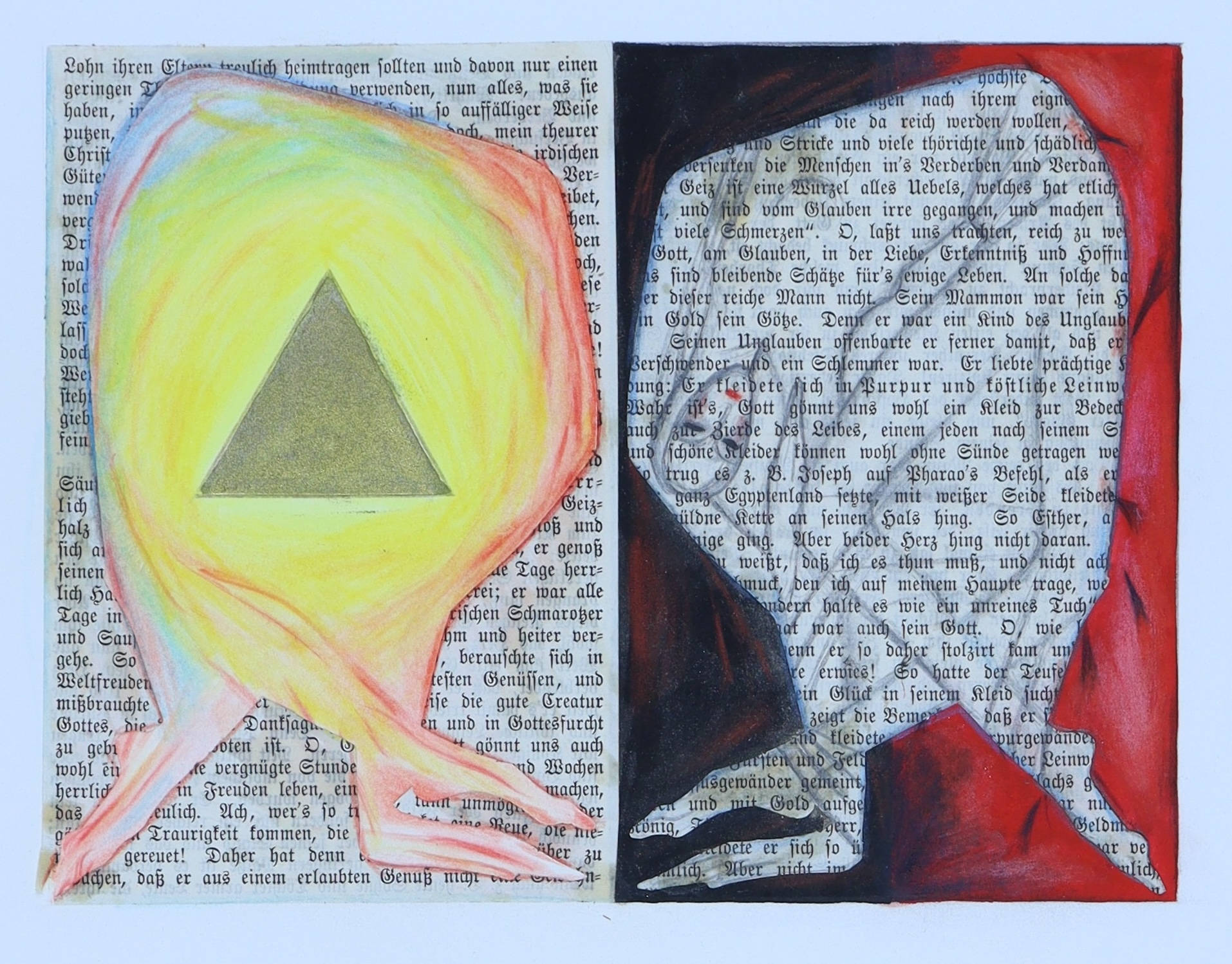 vintage book page, gold paint, watercolor pencil, graphite pencil