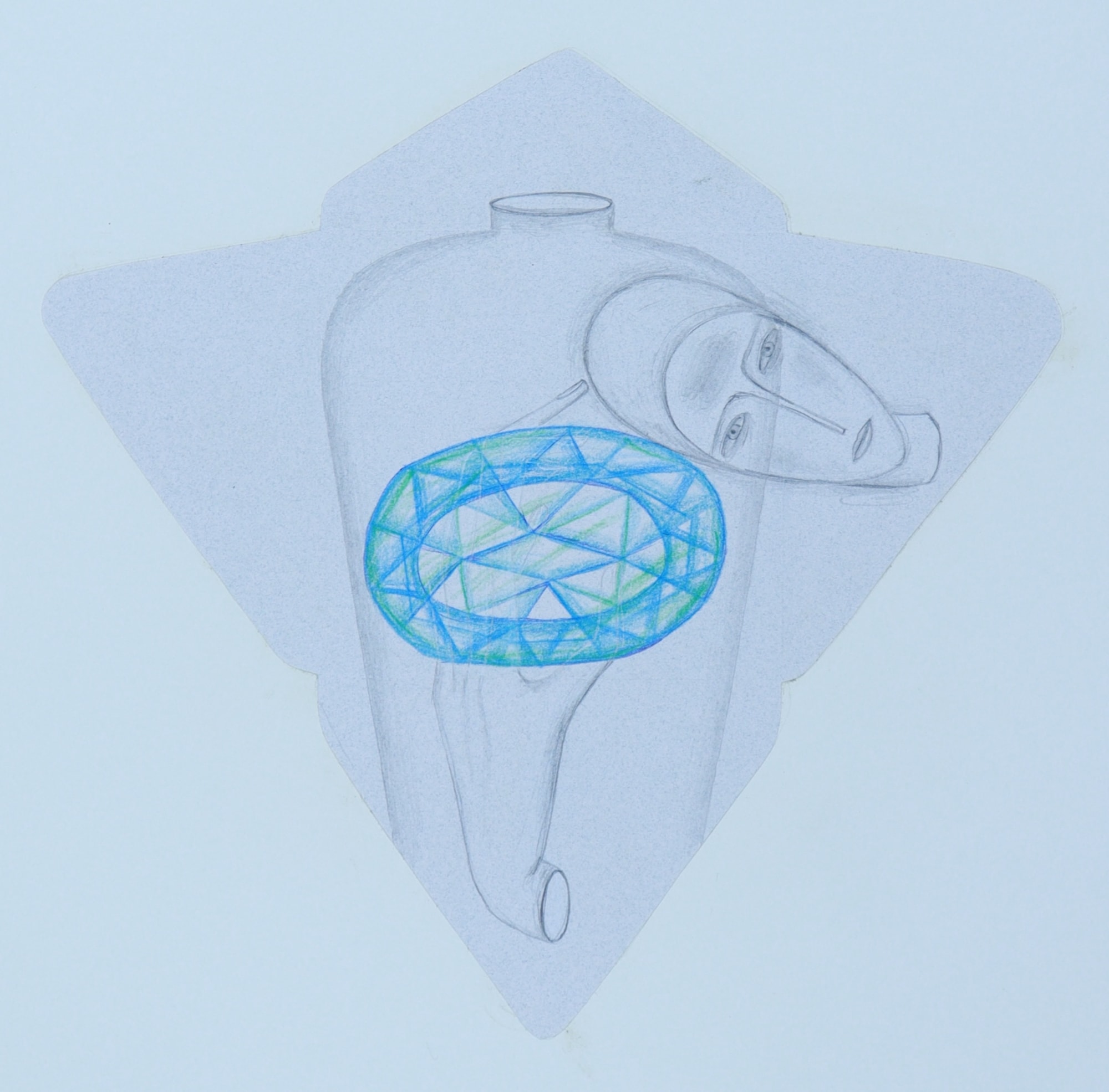 color pencil and graphite on stencil cutout of envelope