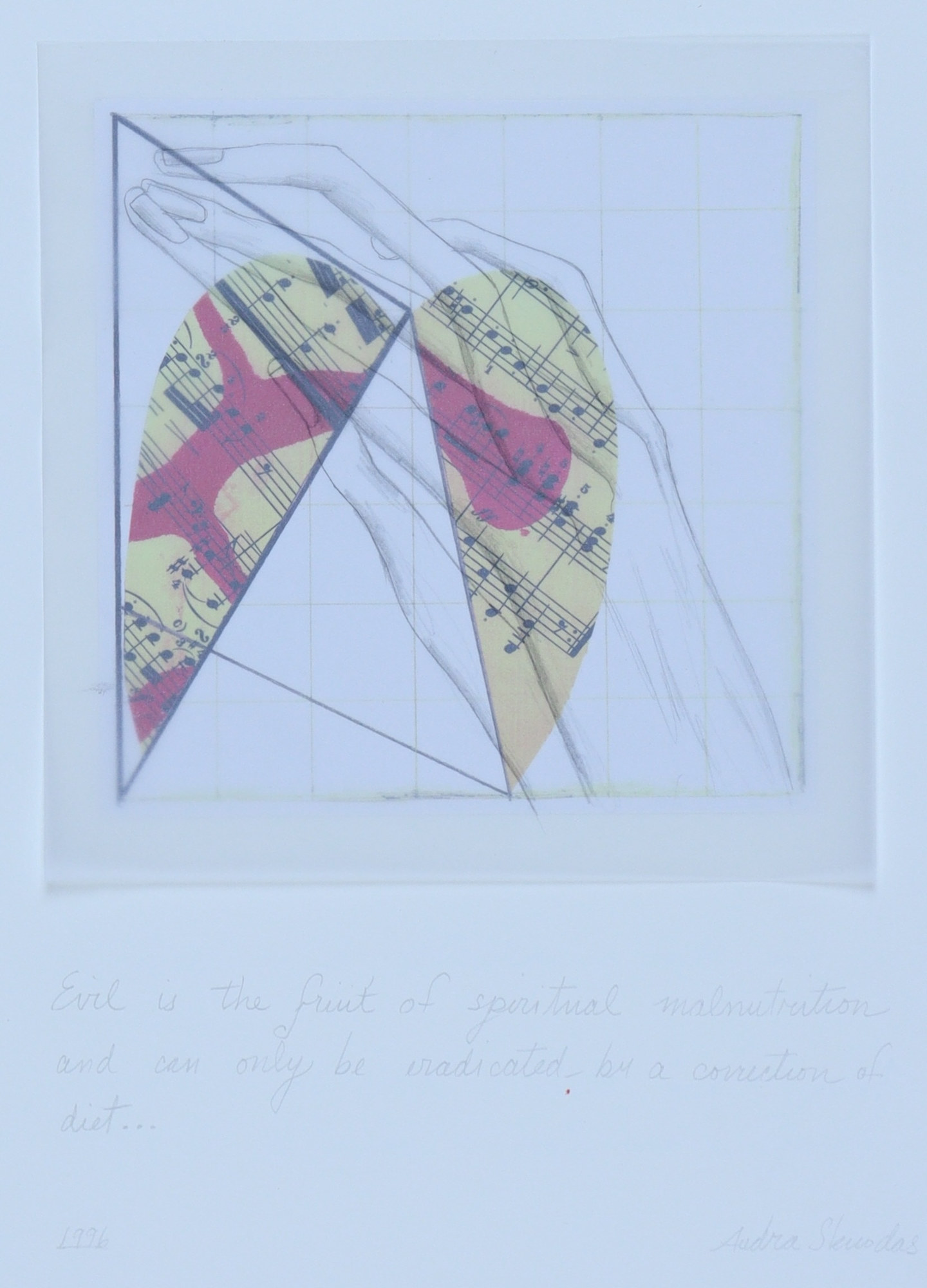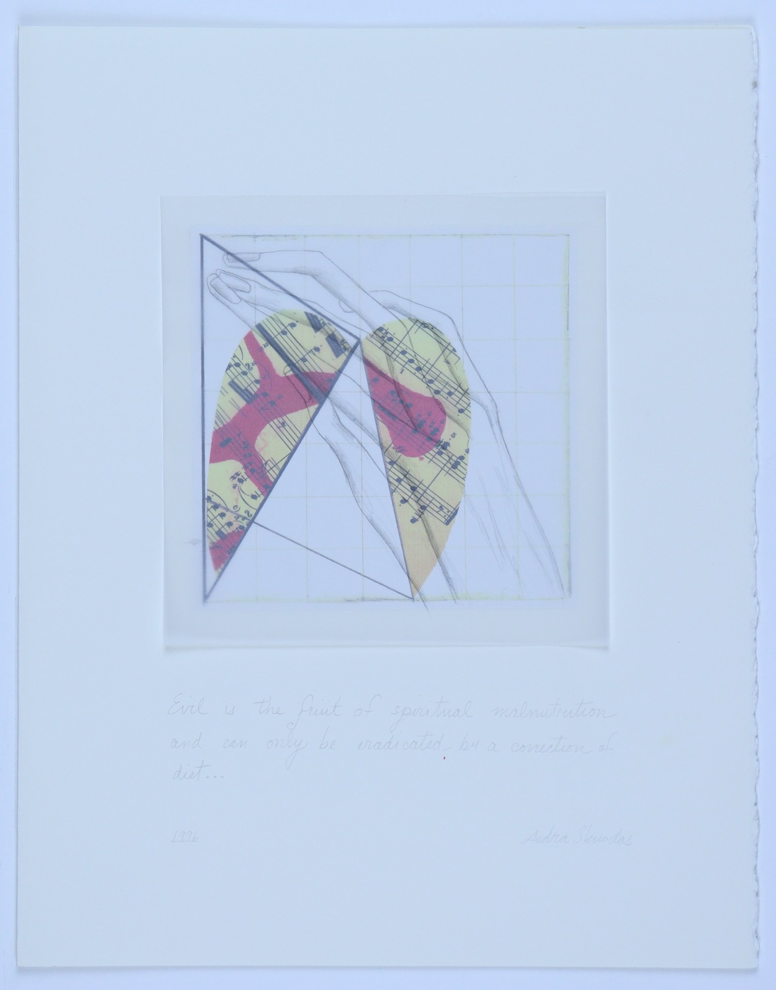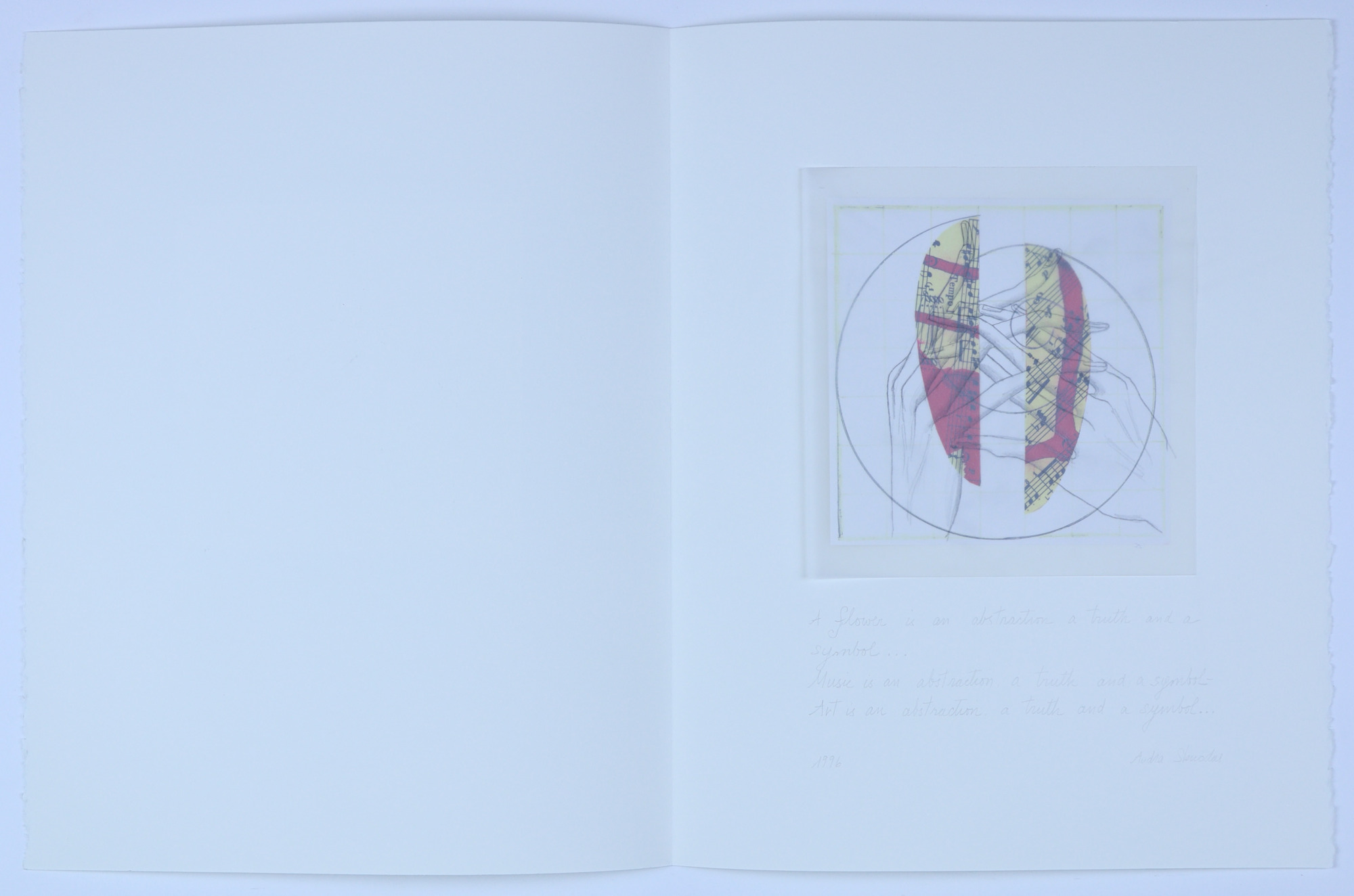 Folio pages of book -- Evil is the fruit of spiritual malnutrition and can only be eradicated by a correction of diet. . . // A flower is an abstraction a truth and a symbol. . . Music is an abstraction a truth and a symbol. Art is an abstraction a truth and a symbol. . .