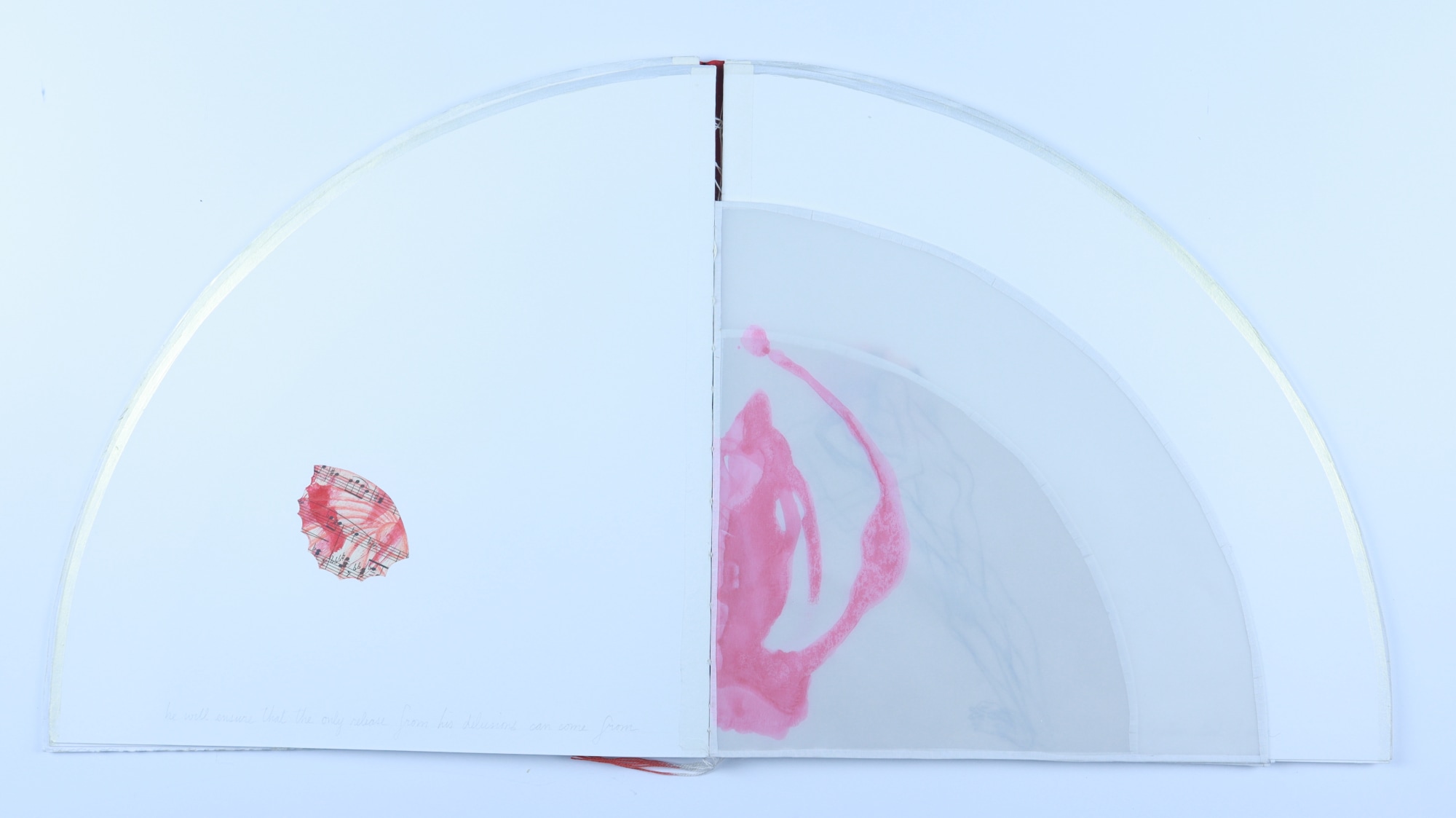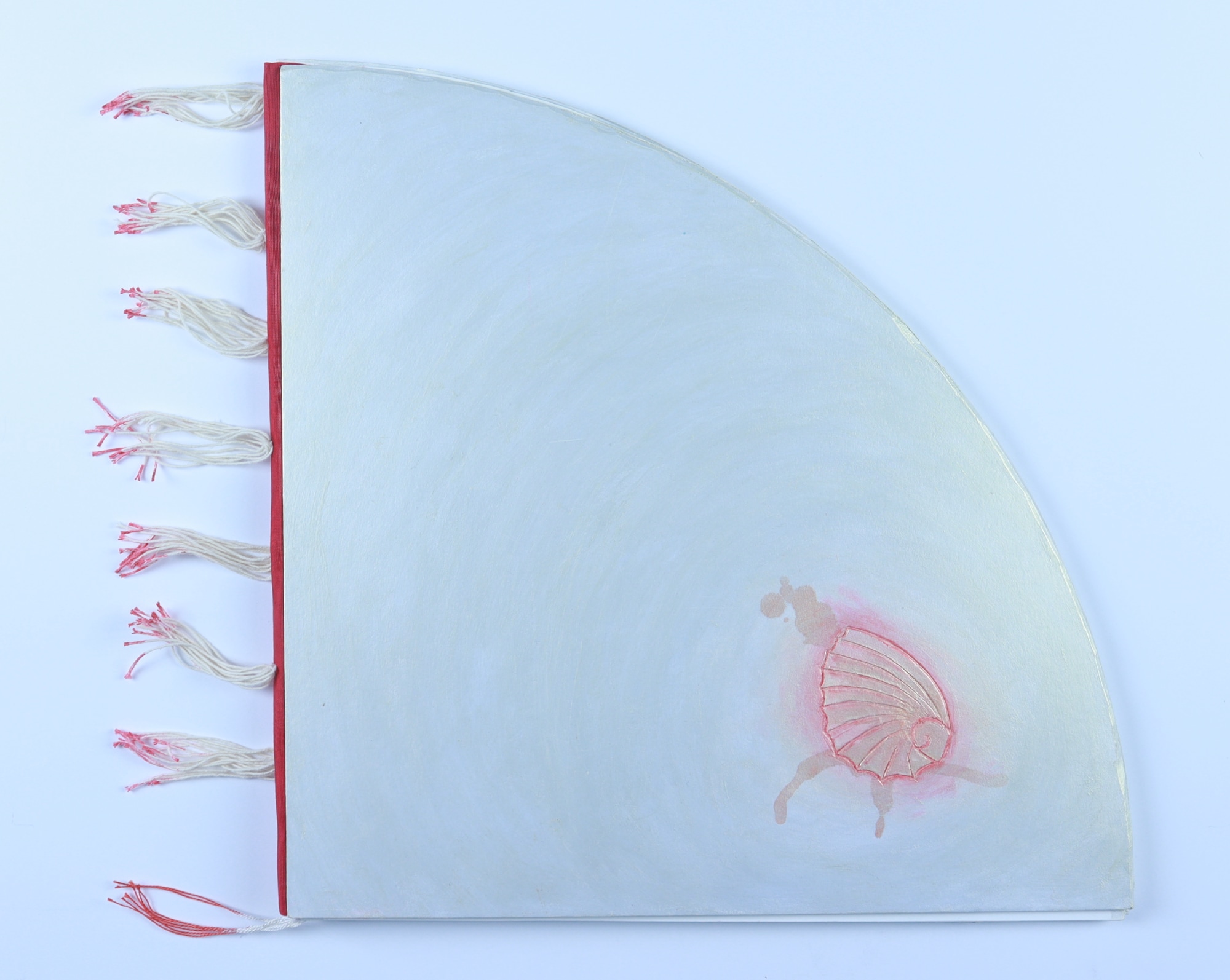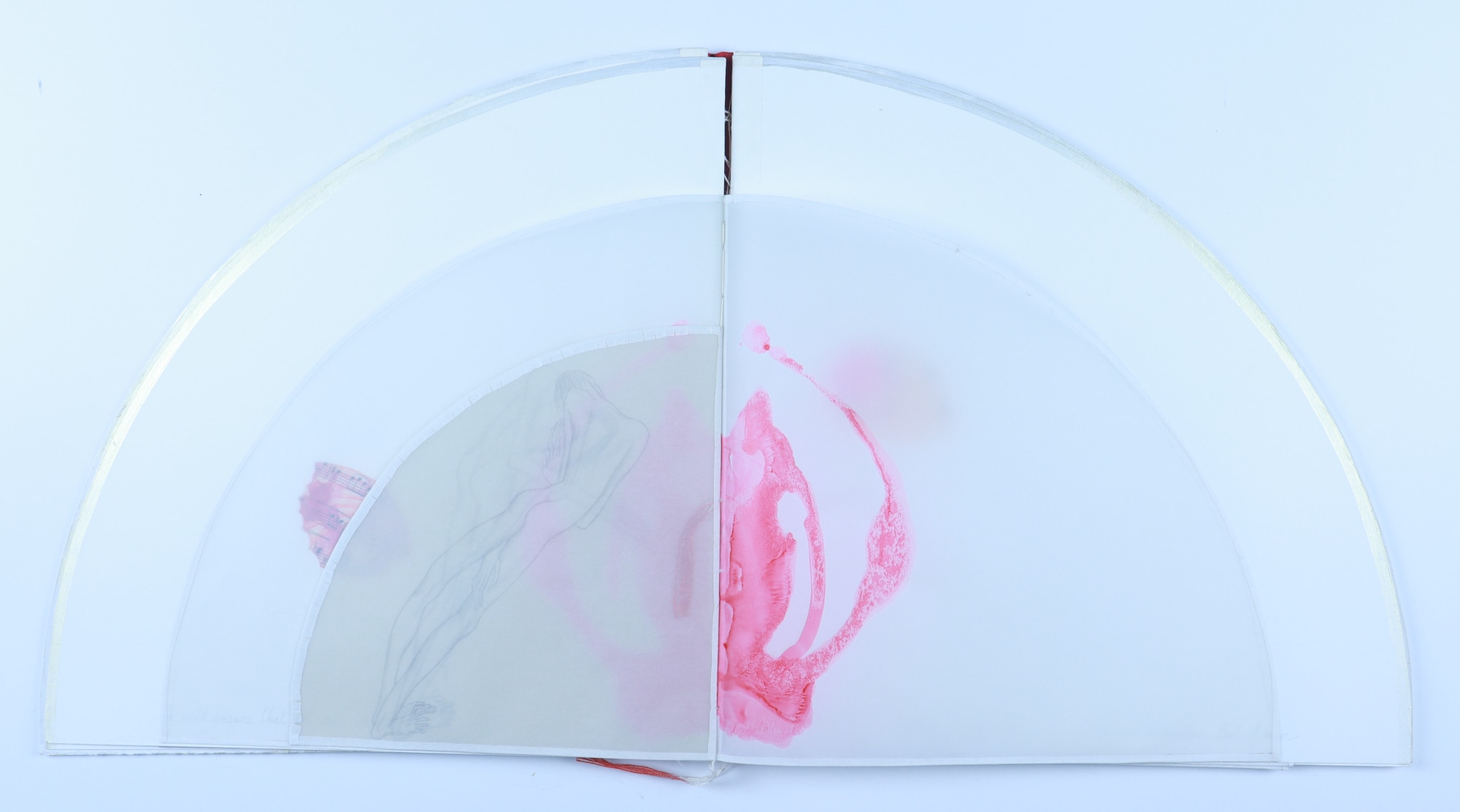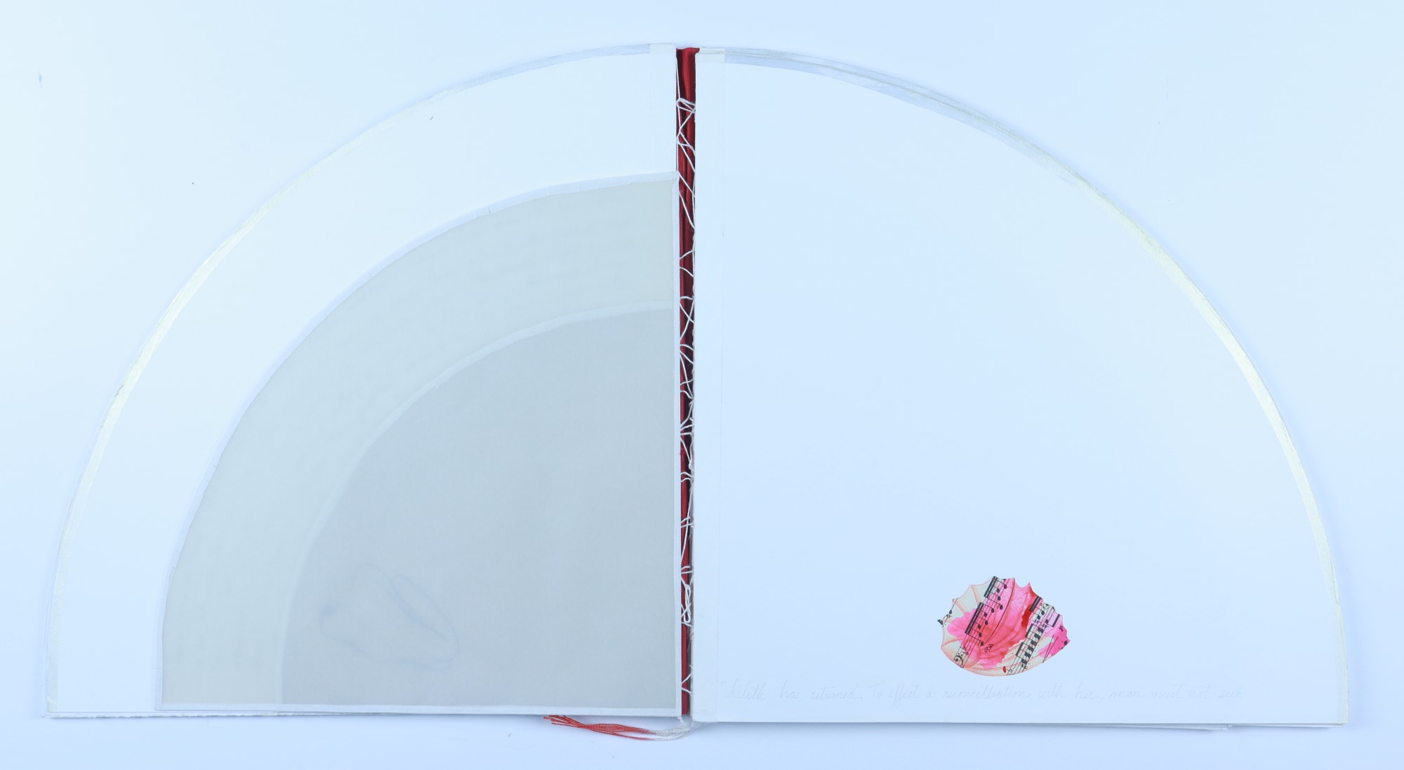 Archival paper, vellum, ink, graphite pencil, fabric, thread, acrylic paint