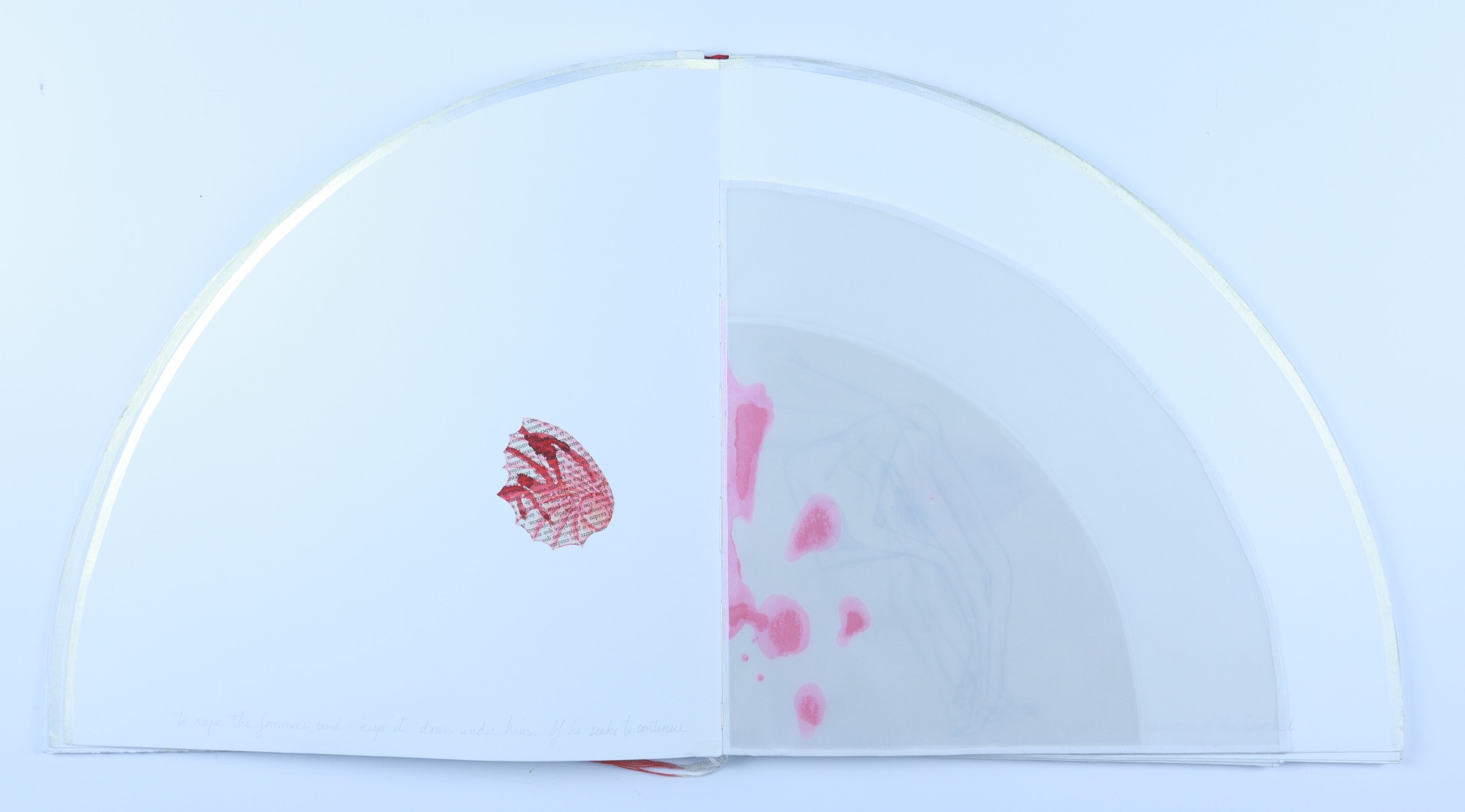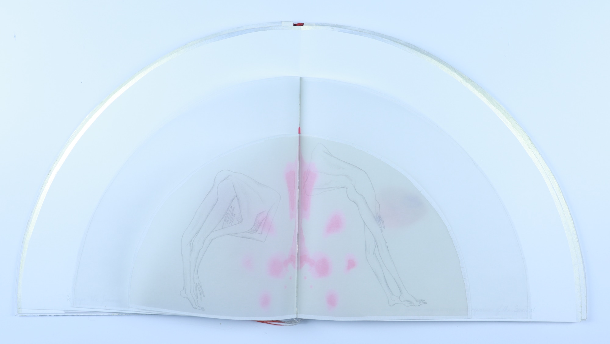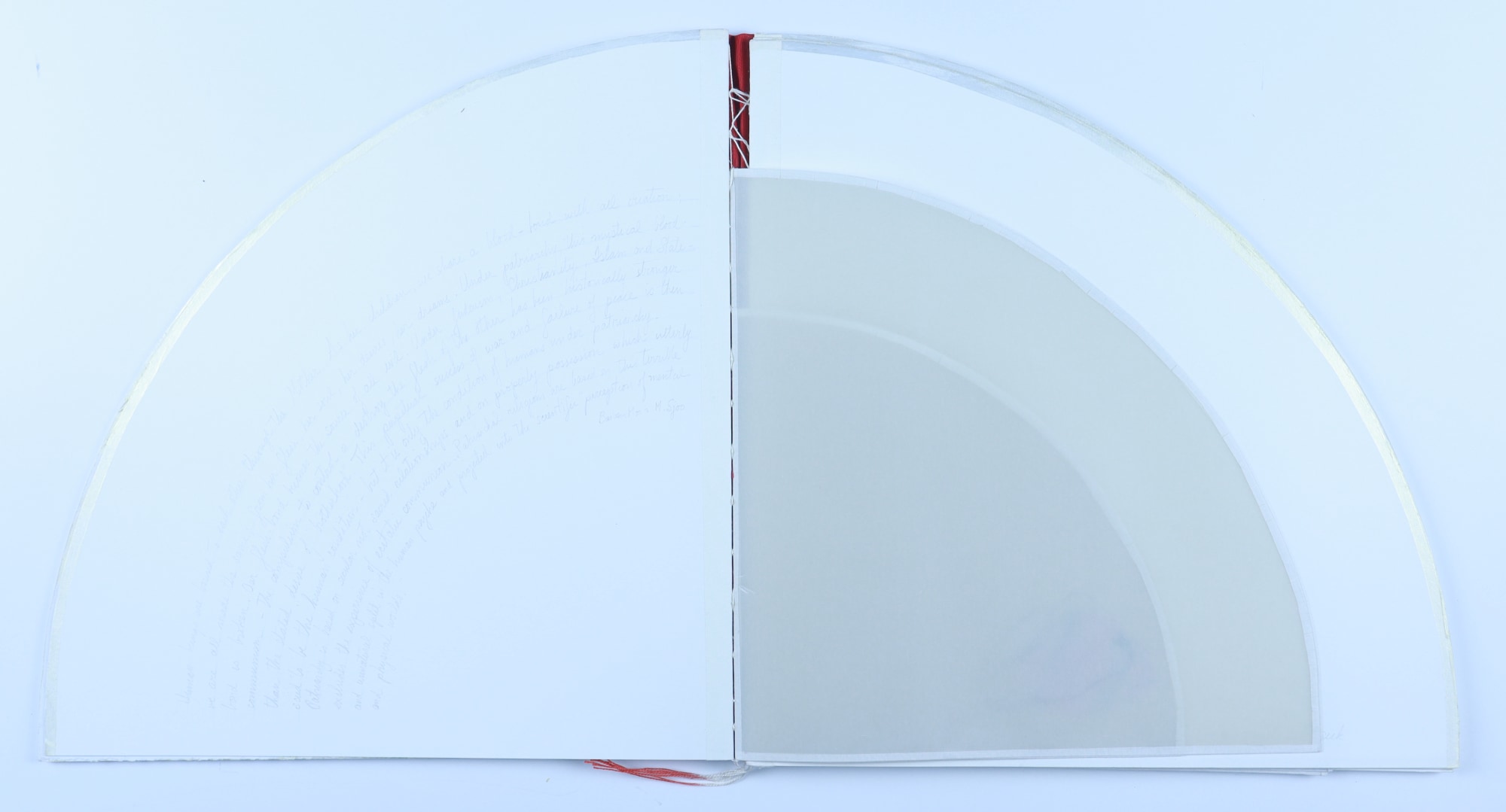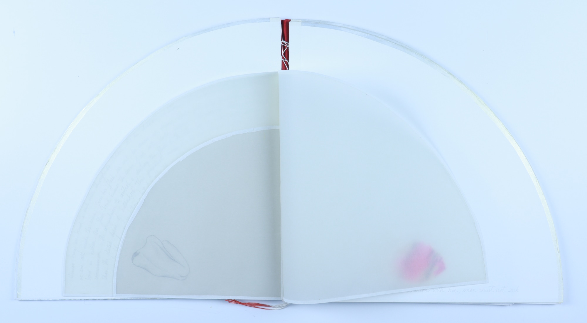 Archival paper, vellum, ink, graphite pencil, fabric, thread, acrylic paint
