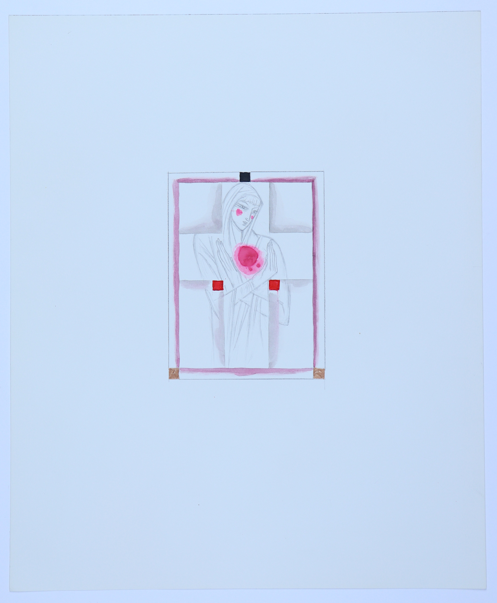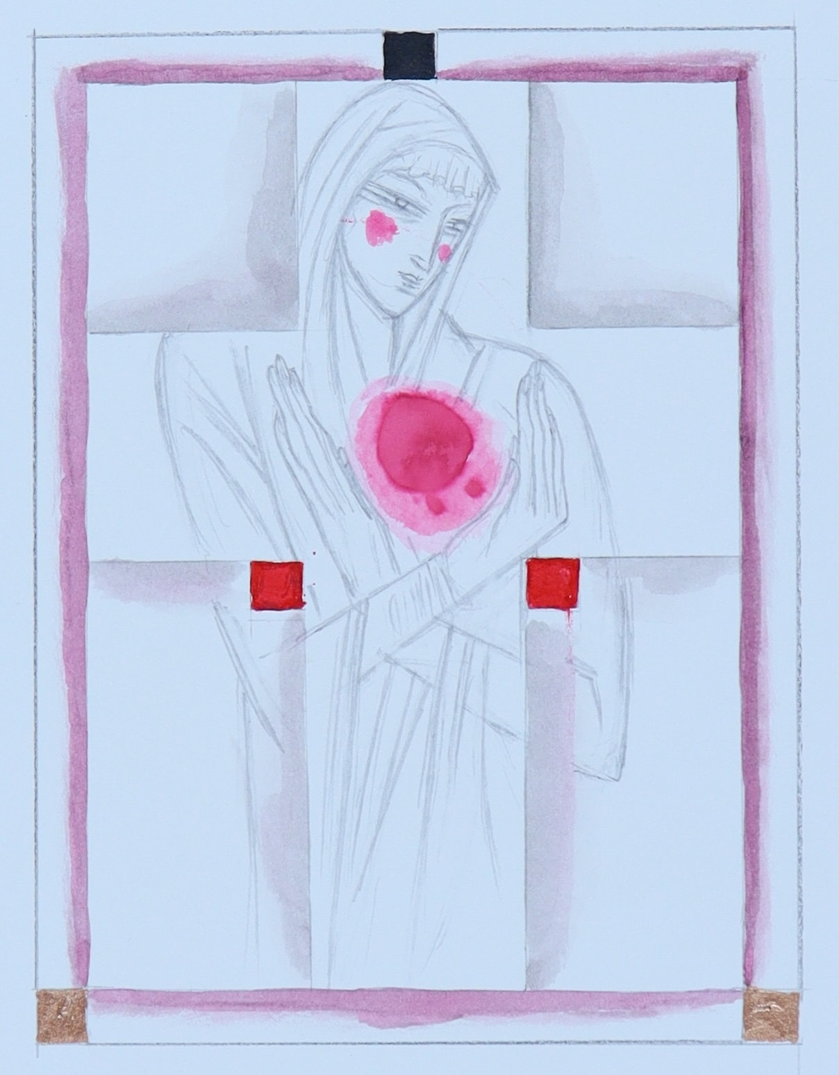 water color (or ink wash?), graphite pencil, color pencil, metallic paint